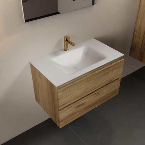 Mondiaz Aivy badmeubelset - 80x45x50cm - 1 kraangat - 1 wasbak talc Solid surface - Midden - 2 lades - Met spiegel - Melamine Chai