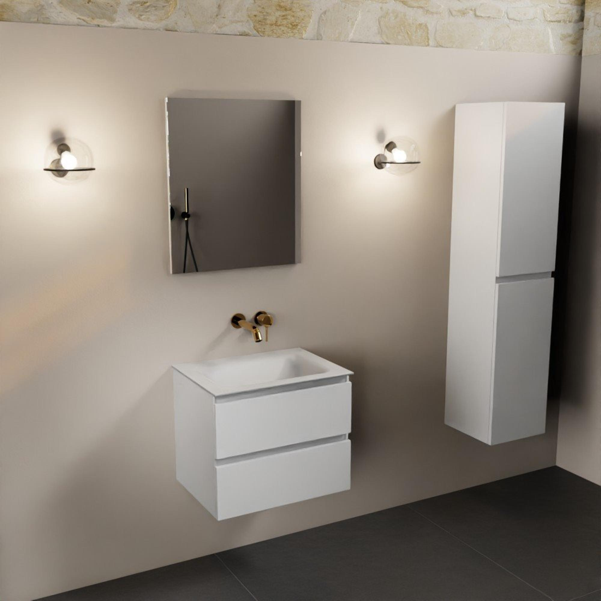 Mondiaz Aivy badmeubelset - 60x45x50cm - 0 kraangaten - 1 wasbak talc Solid surface - Midden - 2 lades - Zonder spiegel - MDF Talc
