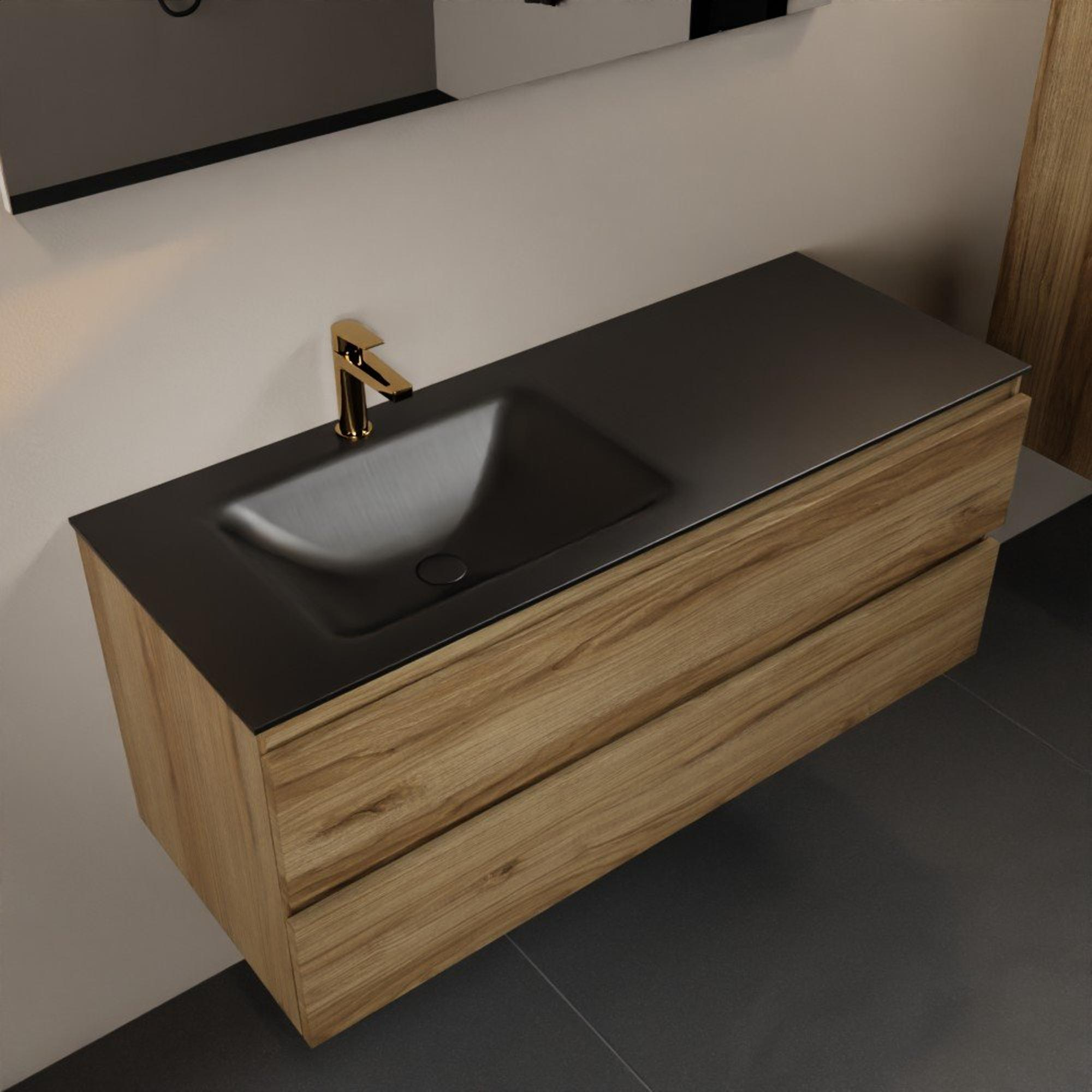 Mondiaz Aivy badmeubelset - 120x45x50cm - 1 kraangat - 1 wasbak urban Solid surface - Links - 2 lades - Met spiegel - Melamine Chai