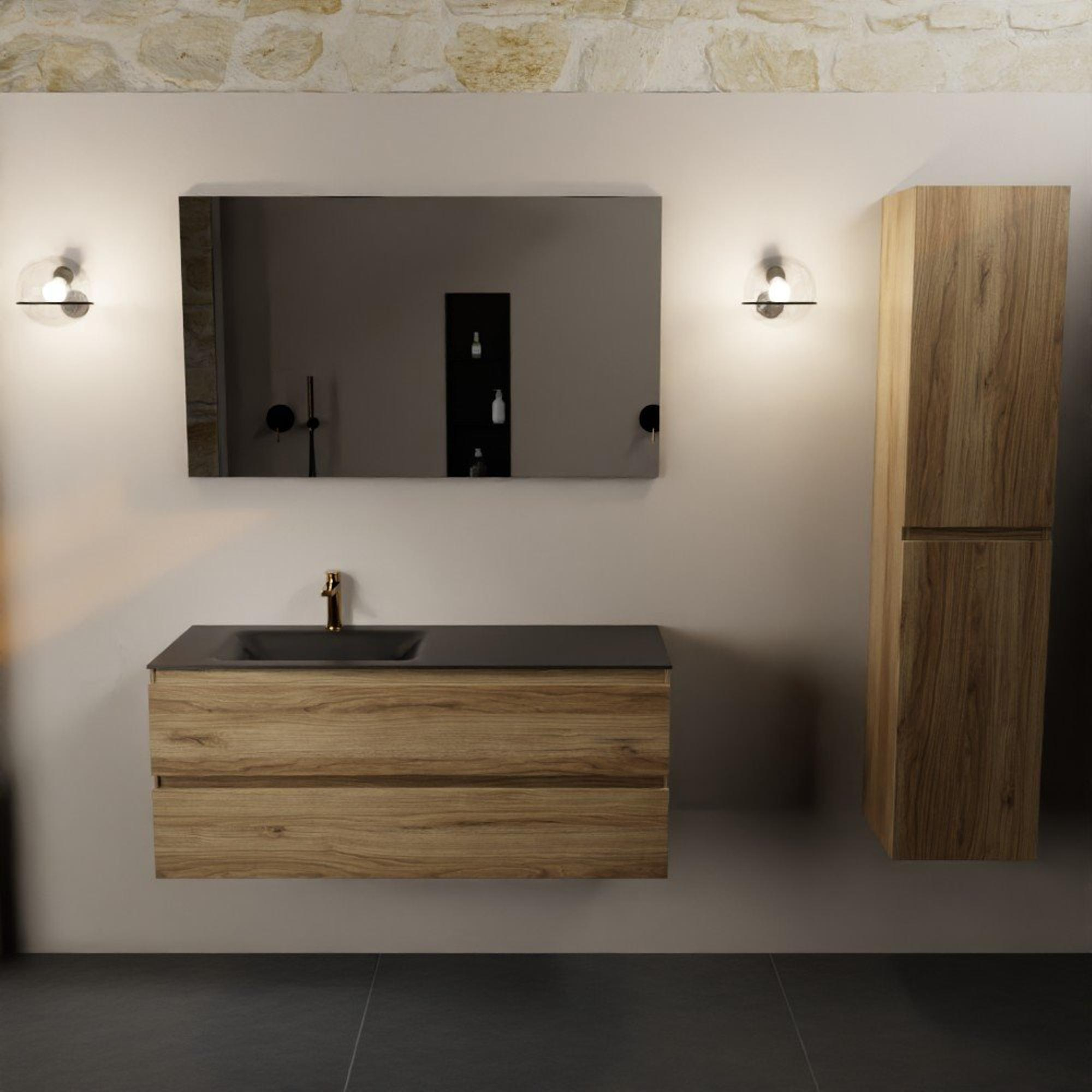Dit badmeubel is niet alleen mooi, maar ook zeer functioneel. Met 2 ruime lades biedt het voldoende opbergruimte voor al jouw badkamerspullen. Het handige kraangat en de bijgeleverde spiegel maken de set compleet en zorgen voor een praktische en georganiseerde badkamerervaring.