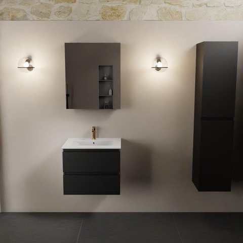 Mondiaz Aivy badmeubelset - 60x45x50cm - 1 kraangat - 1 wasbak talc Keramiek - Midden - 2 lades - Met spiegelkast - MDF Urban