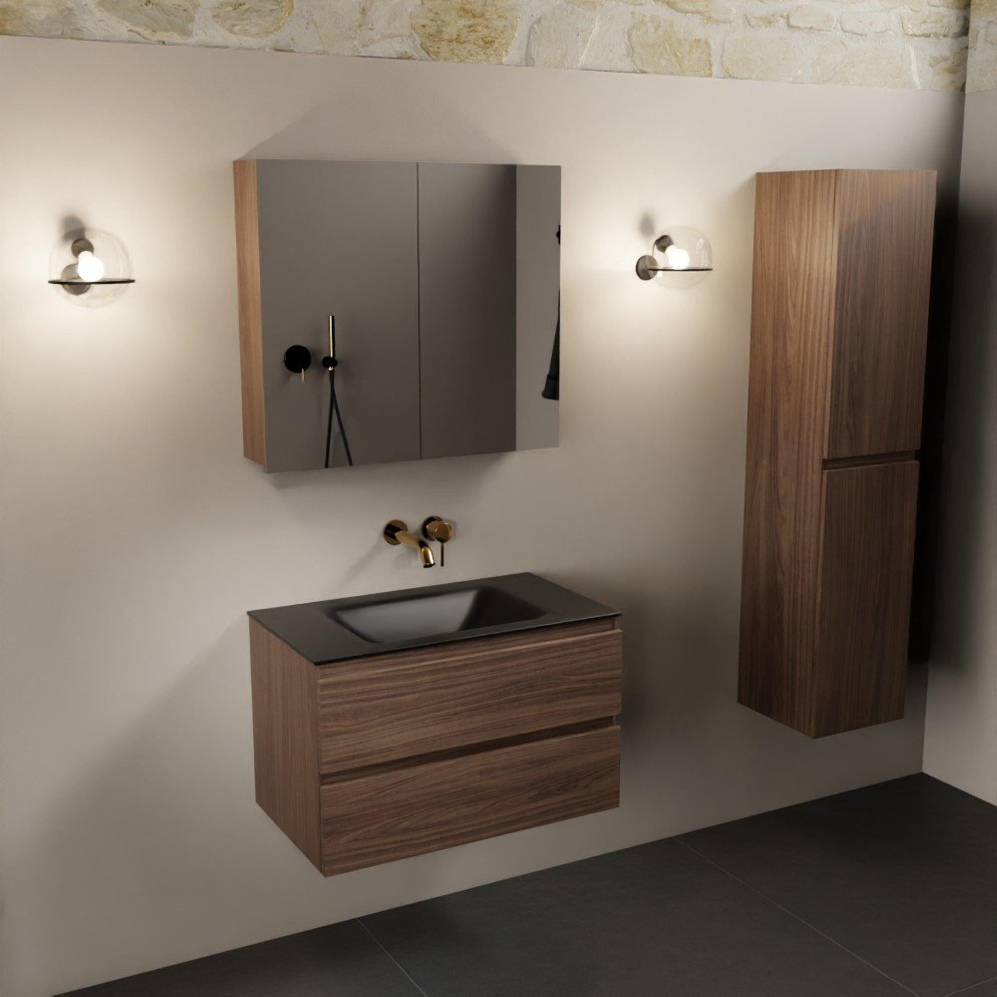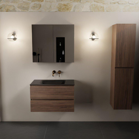 Mondiaz Aivy badmeubelset - 80x45x50cm - 0 kraangaten - 1 wasbak urban Solid surface - Midden - 2 lades - Met spiegelkast - Melamine Mocha