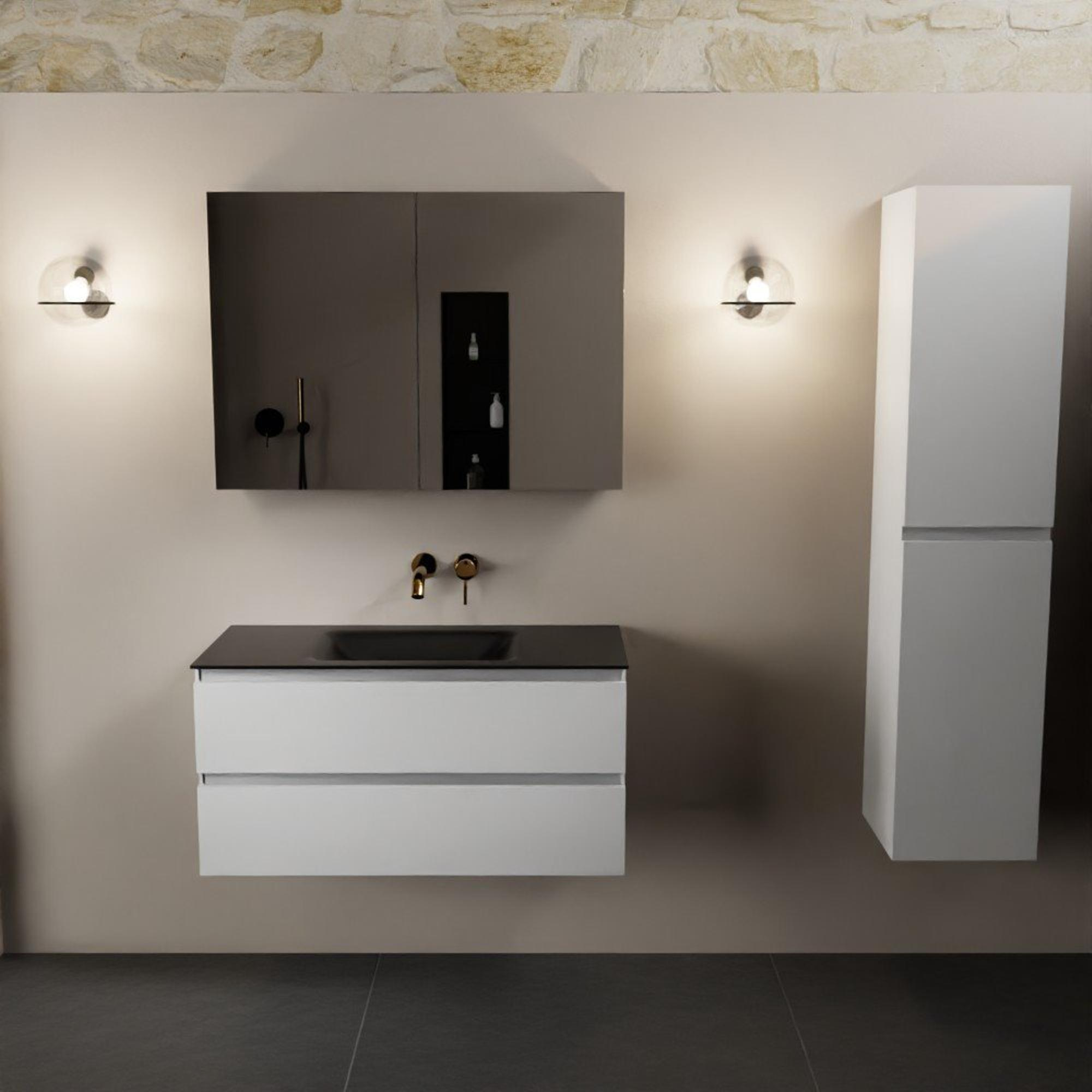 Mondiaz Aivy badmeubelset - 100x45x50cm - 0 kraangaten - 1 wasbak urban Solid surface - Midden - 2 lades - Met spiegelkast - MDF Talc
