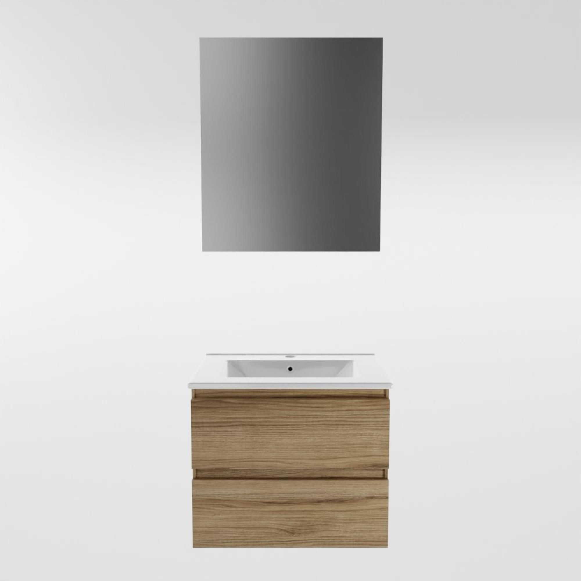 Naast zijn esthetische waarde is deze badmeubelset ook zeer functioneel. De 2 lades bieden voldoende ruimte om al je badkamerspullen georganiseerd te houden, terwijl de bijgeleverde spiegel zorgt voor extra gemak tijdens je dagelijkse routine. Het melamine chai design voegt een warme en uitnodigende sfeer toe aan de ruimte.