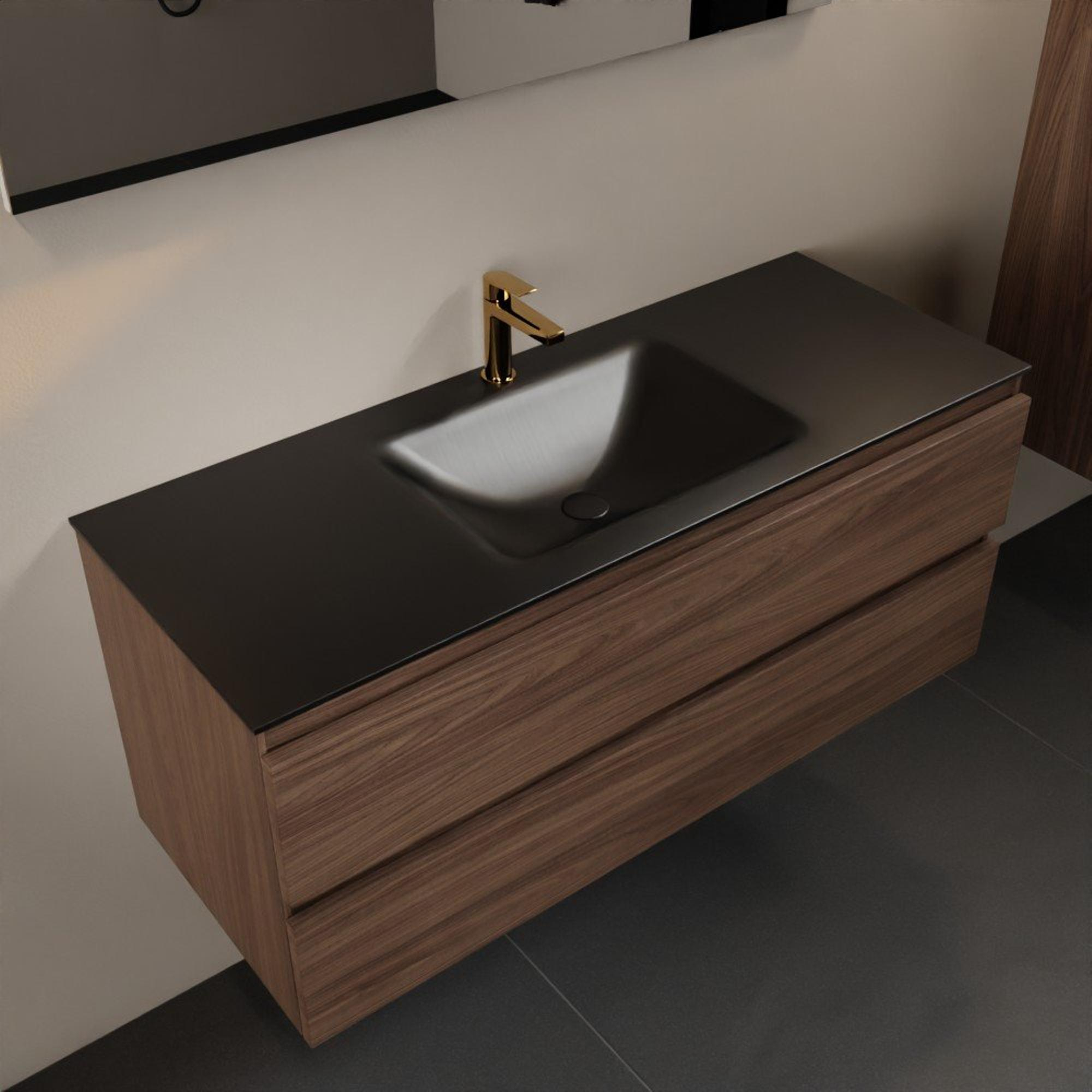 Mondiaz Aivy badmeubelset - 120x45x50cm - 1 kraangat - 1 wasbak urban Solid surface - Midden - 2 lades - Met spiegel - Melamine Mocha