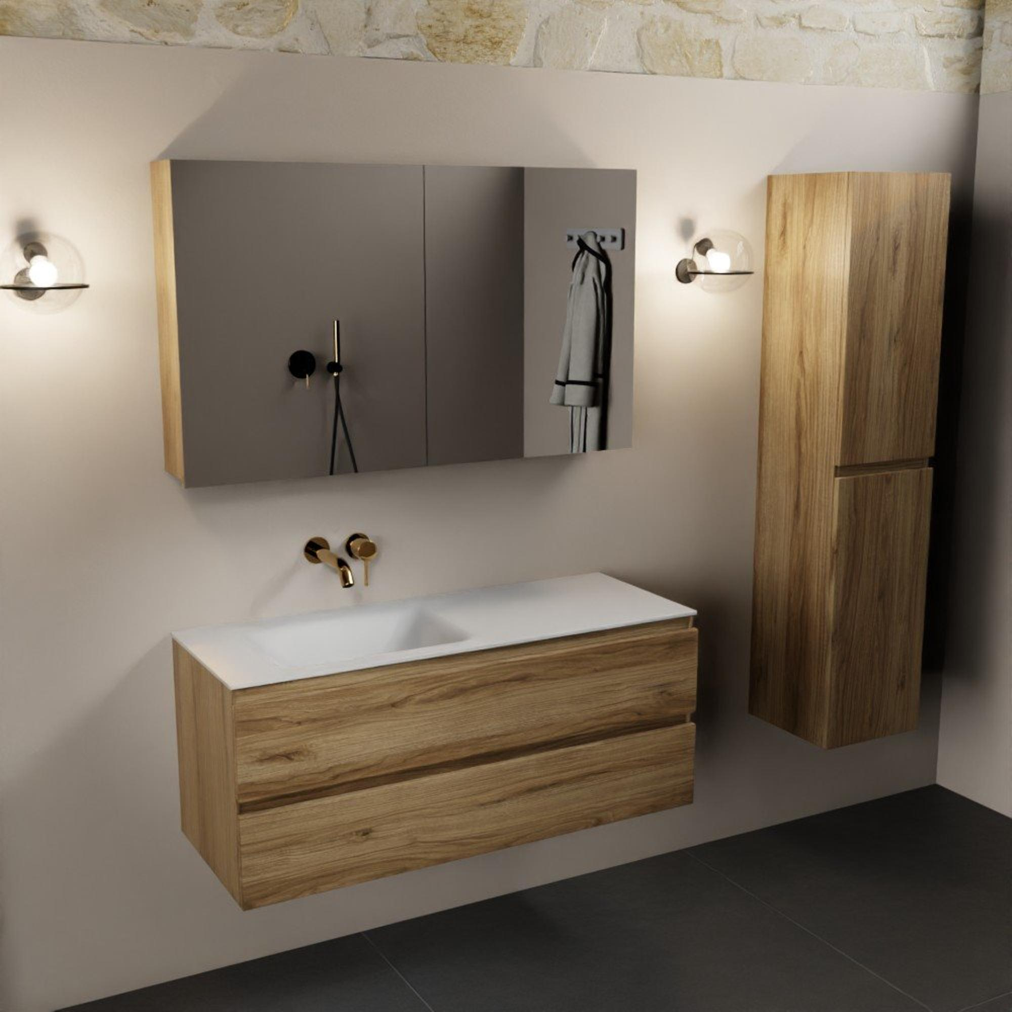 Mondiaz Aivy badmeubelset - 120x45x50cm - 0 kraangaten - 1 wasbak talc Solid surface - Links - 2 lades - Met spiegelkast - Melamine Chai