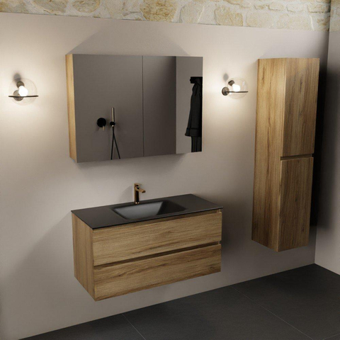 Mondiaz Aivy badmeubelset - 100x45x50cm - 1 kraangat - 1 wasbak urban Solid surface - Midden - 2 lades - Met spiegelkast - Melamine Chai