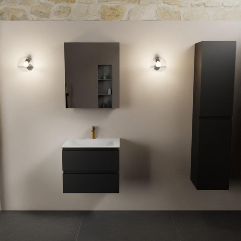 Mondiaz Aivy badmeubelset - 60x45x50cm - 1 kraangat - 1 wasbak talc Solid surface - Midden - 2 lades - Met spiegelkast - MDF Urban