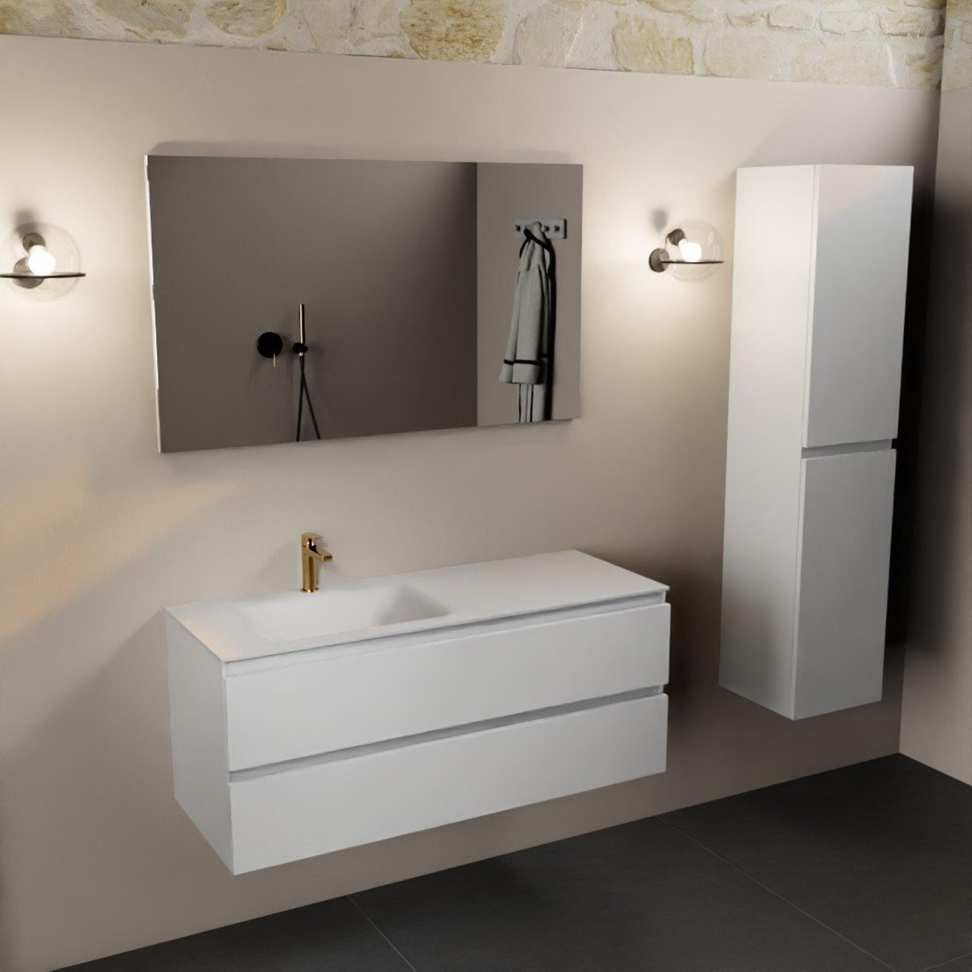 Mondiaz Aivy badmeubelset - 120x45x50cm - 1 kraangat - 1 wasbak talc Solid surface - Links - 2 lades - Met spiegel - MDF Talc