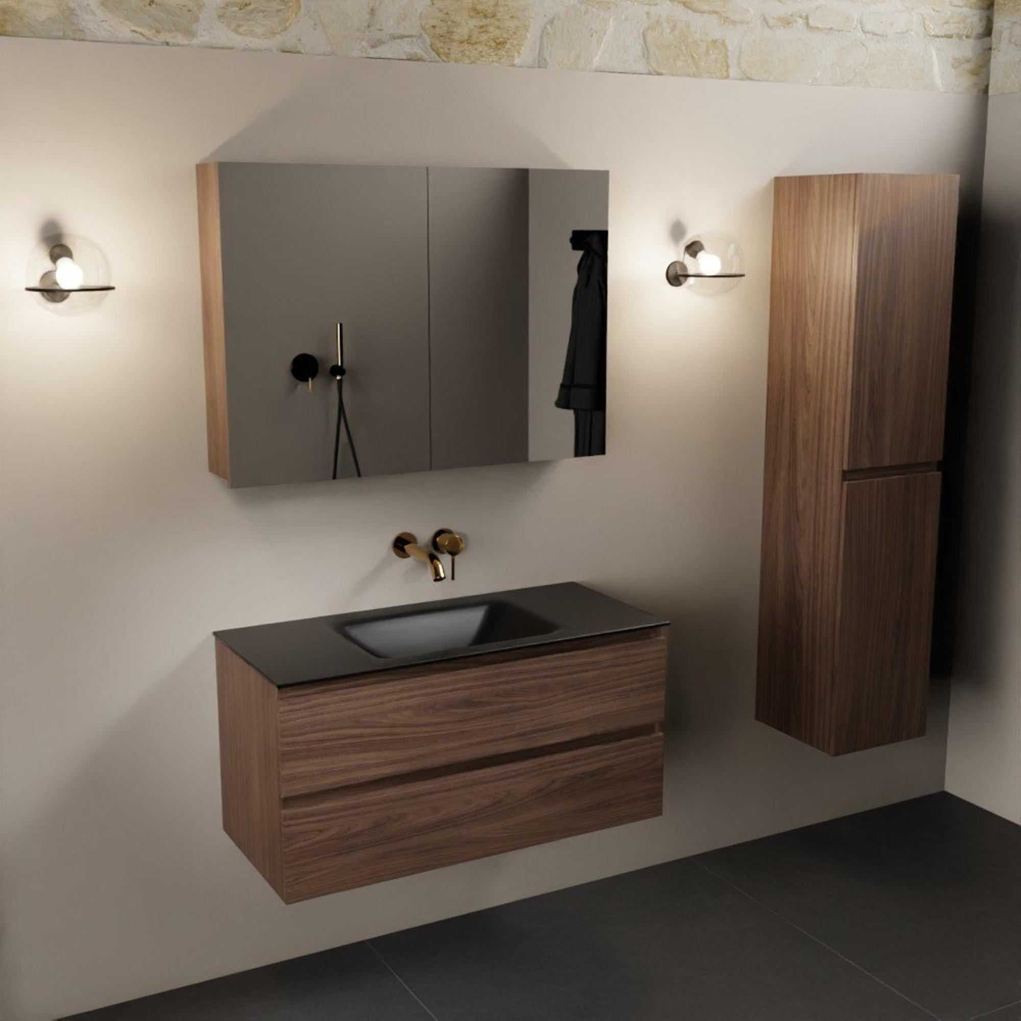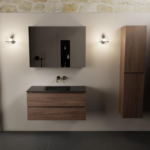 Mondiaz Aivy badmeubelset - 100x45x50cm - 0 kraangaten - 1 wasbak urban Solid surface - Midden - 2 lades - Met spiegelkast - Melamine Mocha