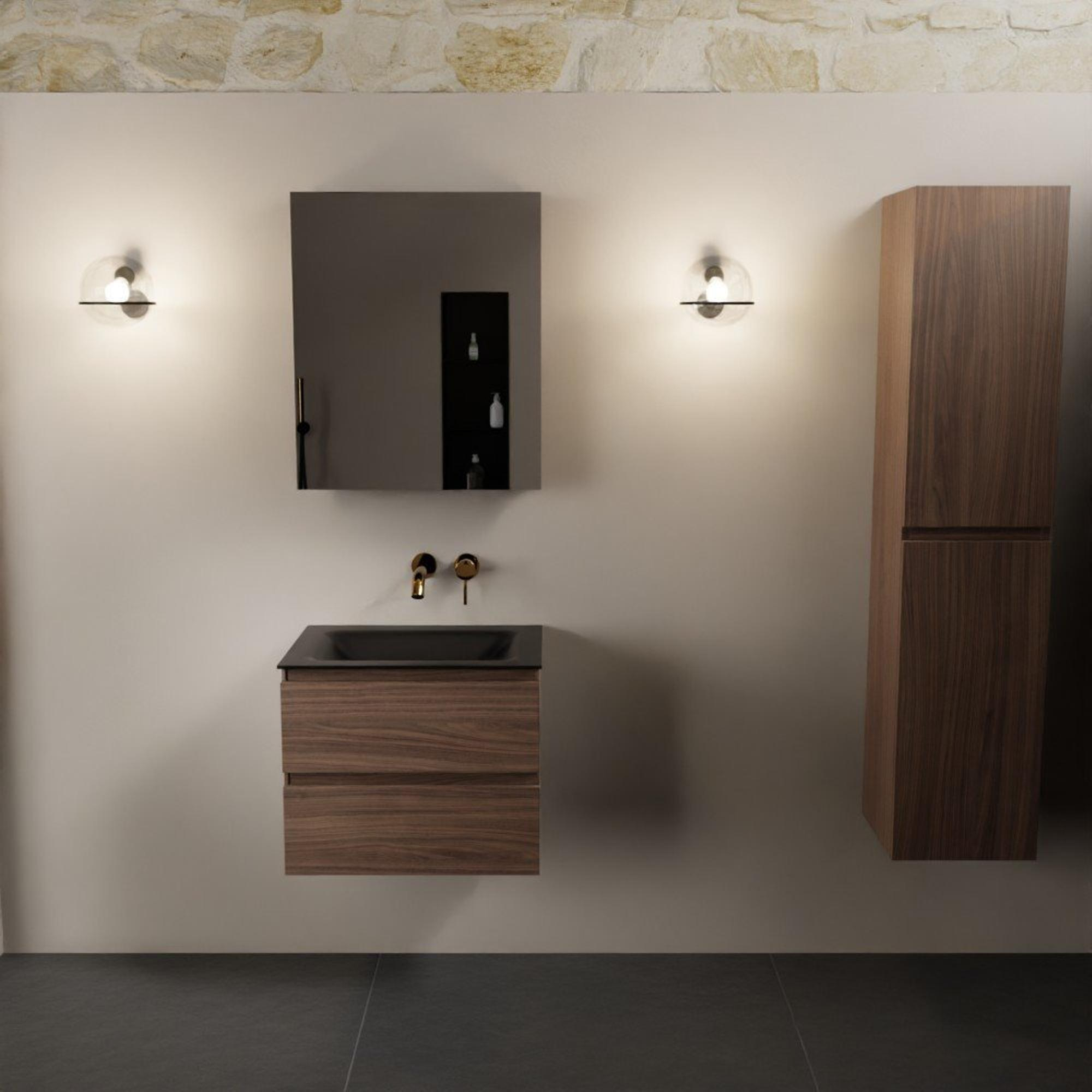 Mondiaz Aivy badmeubelset - 60x45x50cm - 0 kraangaten - 1 wasbak urban Solid surface - Midden - 2 lades - Met spiegelkast - Melamine Mocha