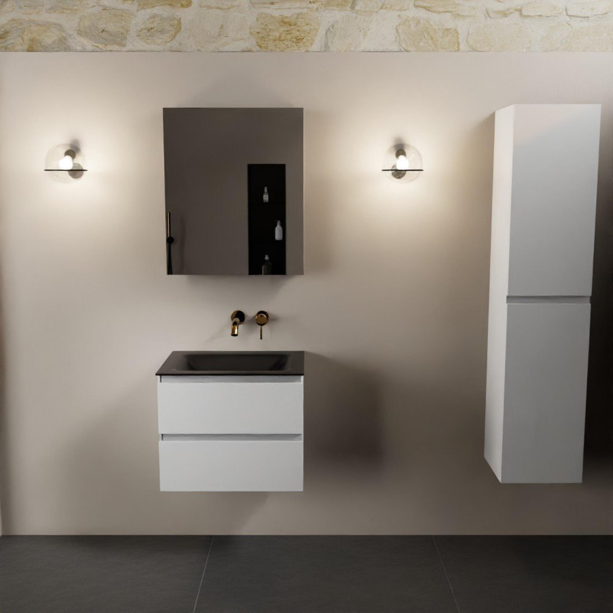 Mondiaz Aivy badmeubelset - 60x45x50cm - 0 kraangaten - 1 wasbak urban Solid surface - Midden - 2 lades - Met spiegelkast - MDF Talc