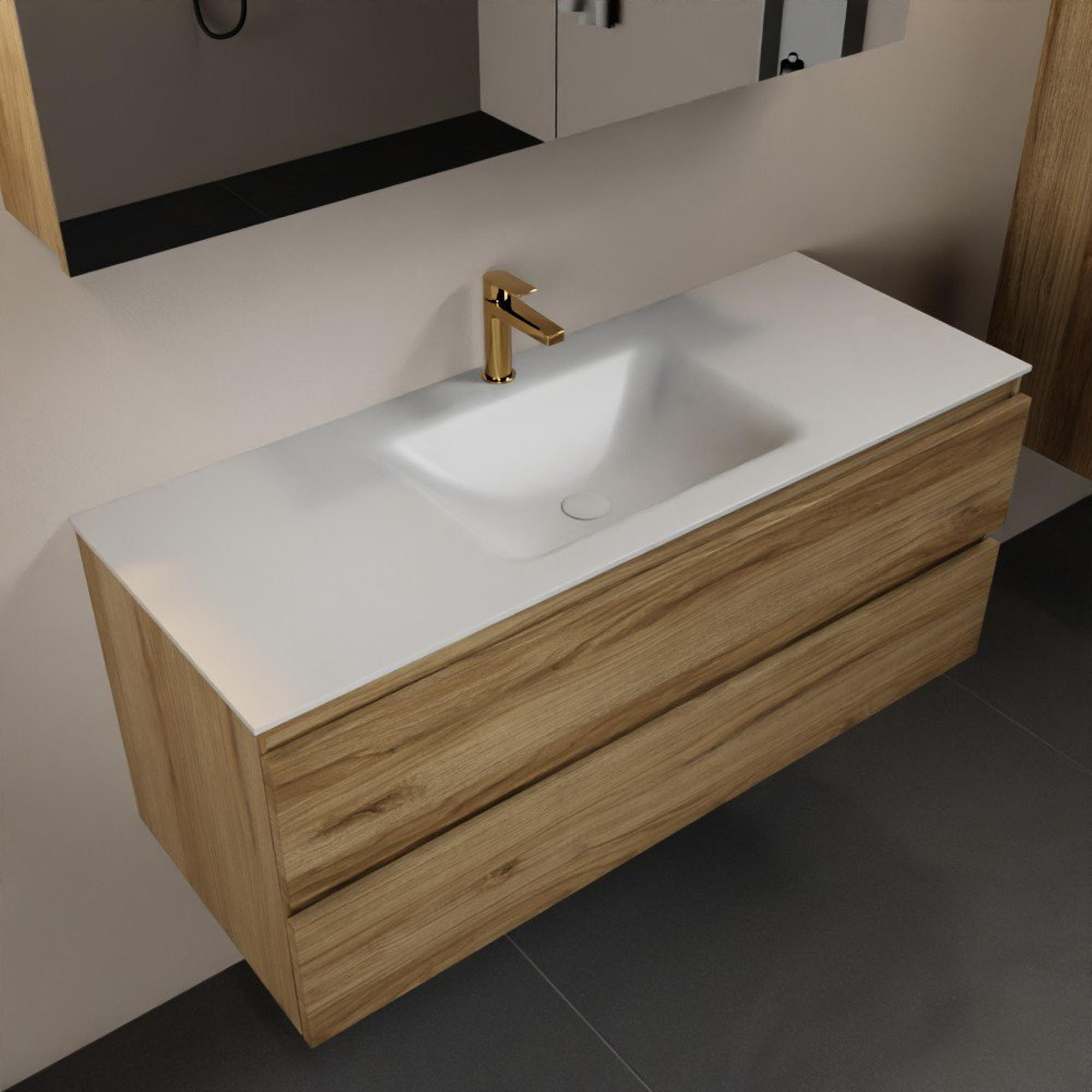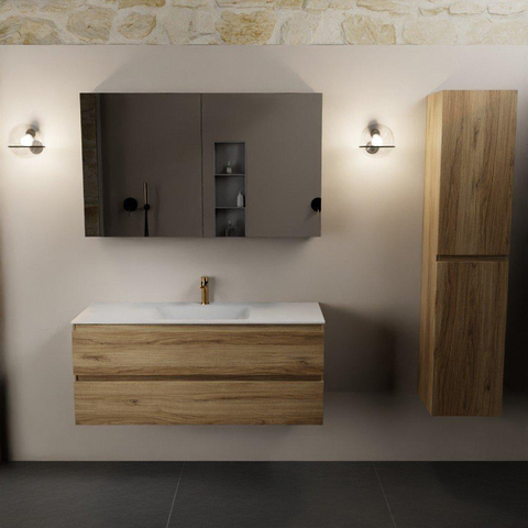 Mondiaz Aivy badmeubelset - 120x45x50cm - 1 kraangat - 1 wasbak talc Solid surface - Midden - 2 lades - Met spiegelkast - Melamine Chai
