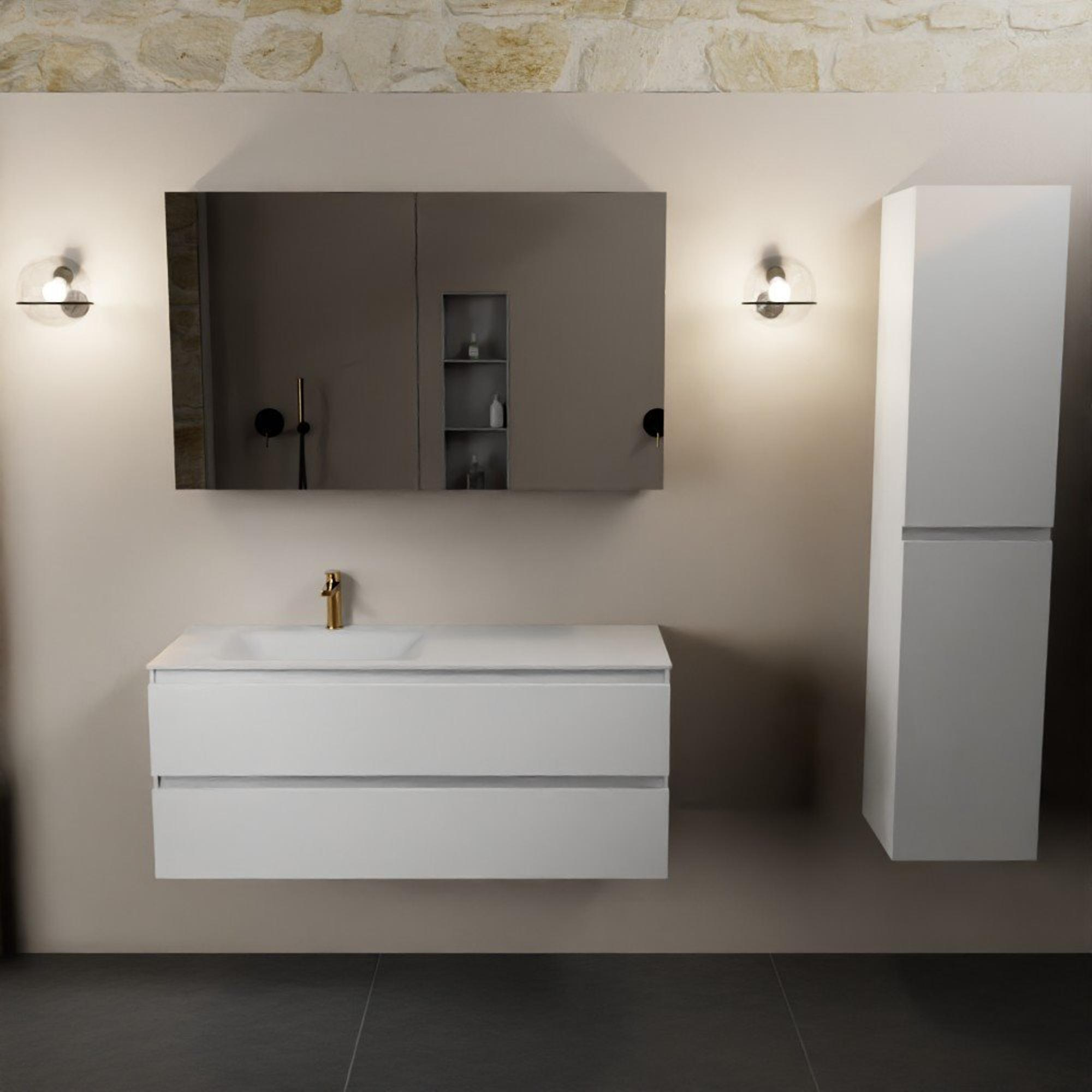 Mondiaz Aivy badmeubelset - 120x45x50cm - 1 kraangat - 1 wasbak talc Solid surface - Links - 2 lades - Met spiegelkast - MDF Talc