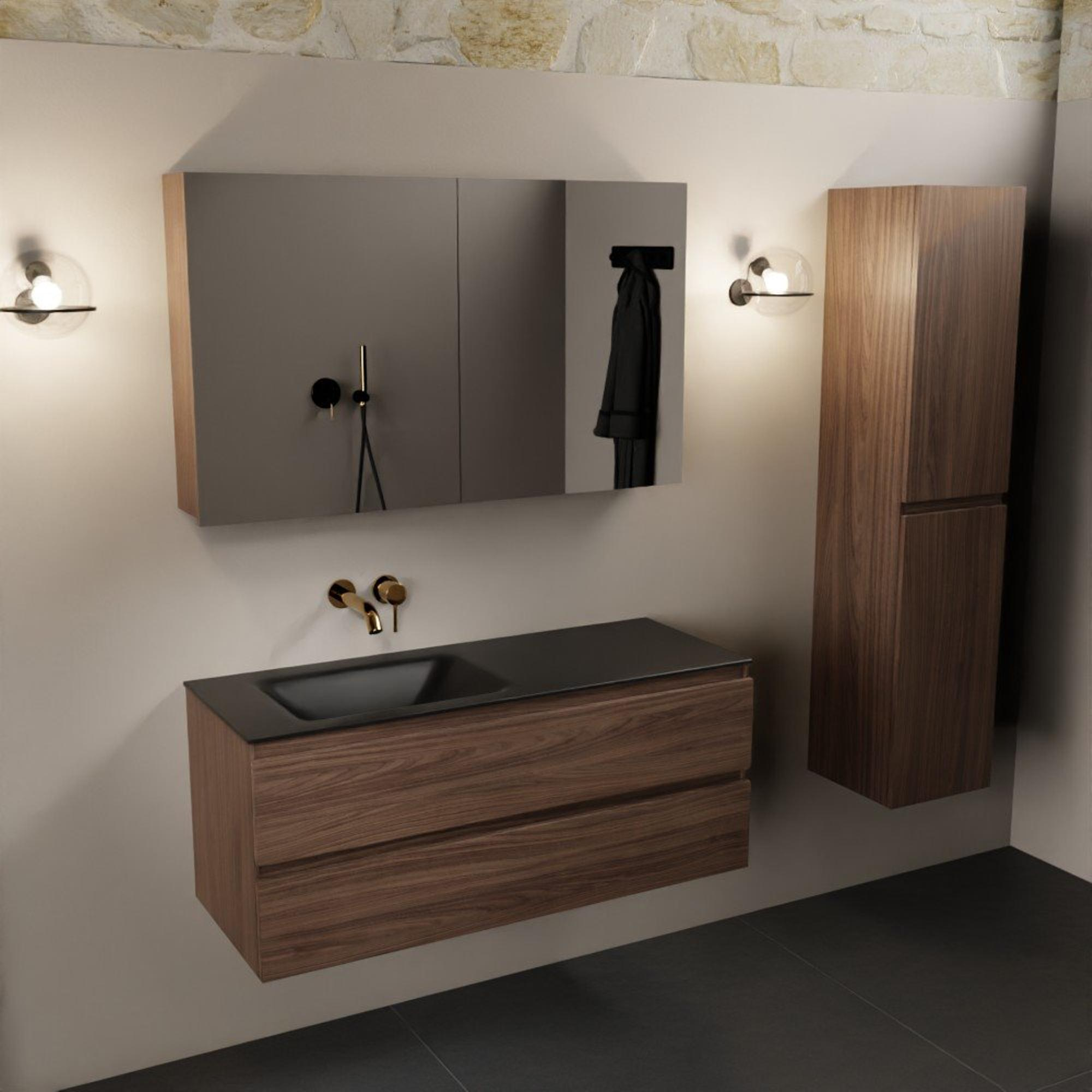 Mondiaz Aivy badmeubelset - 120x45x50cm - 0 kraangaten - 1 wasbak urban Solid surface - Links - 2 lades - Met spiegelkast - Melamine Mocha