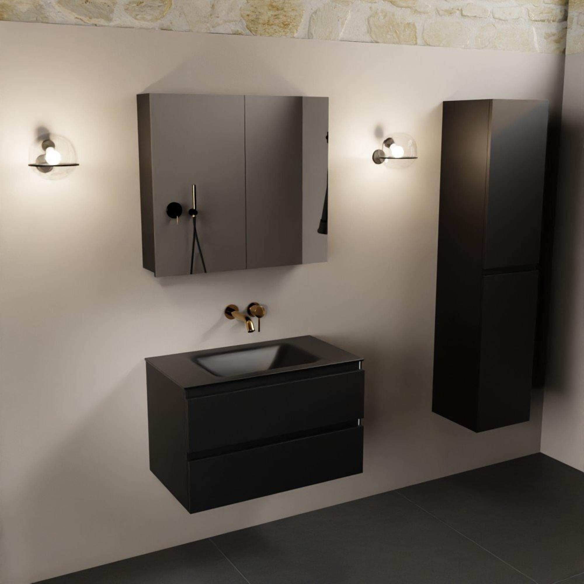 Mondiaz Aivy badmeubelset - 80x45x50cm - 0 kraangaten - 1 wasbak urban Solid surface - Midden - 2 lades - Met spiegelkast - MDF Urban