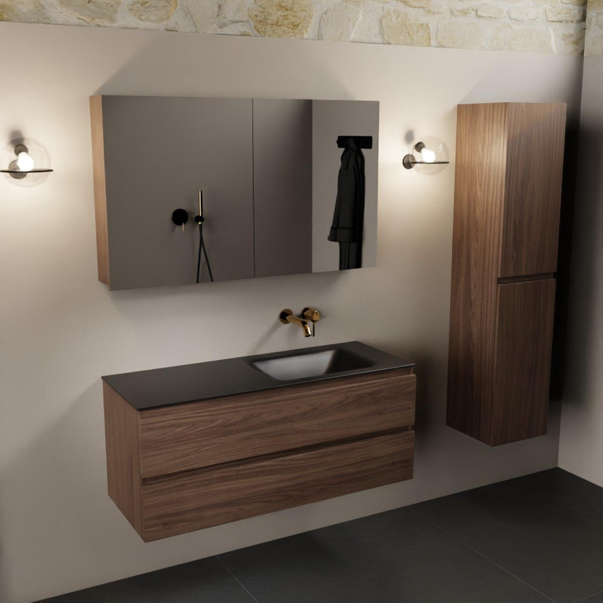 Mondiaz Aivy badmeubelset - 120x45x50cm - 0 kraangaten - 1 wasbak urban Solid surface - Rechts - 2 lades - Met spiegelkast - Melamine Mocha