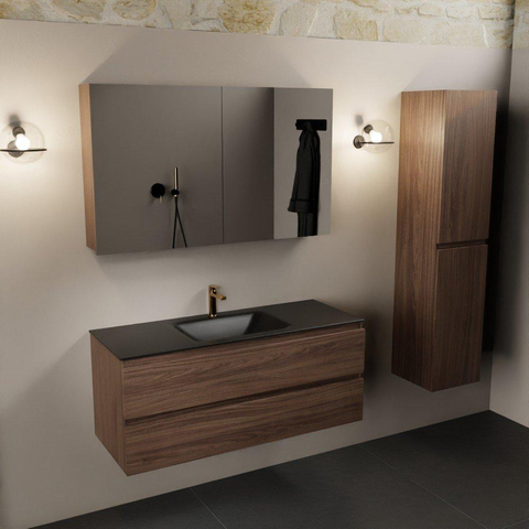 Mondiaz Aivy badmeubelset - 120x45x50cm - 1 kraangat - 1 wasbak urban Solid surface - Midden - 2 lades - Met spiegelkast - Melamine Mocha