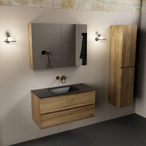 Mondiaz Aivy badmeubelset - 100x45x50cm - 0 kraangaten - 1 wasbak urban Solid surface - Midden - 2 lades - Met spiegelkast - Melamine Chai