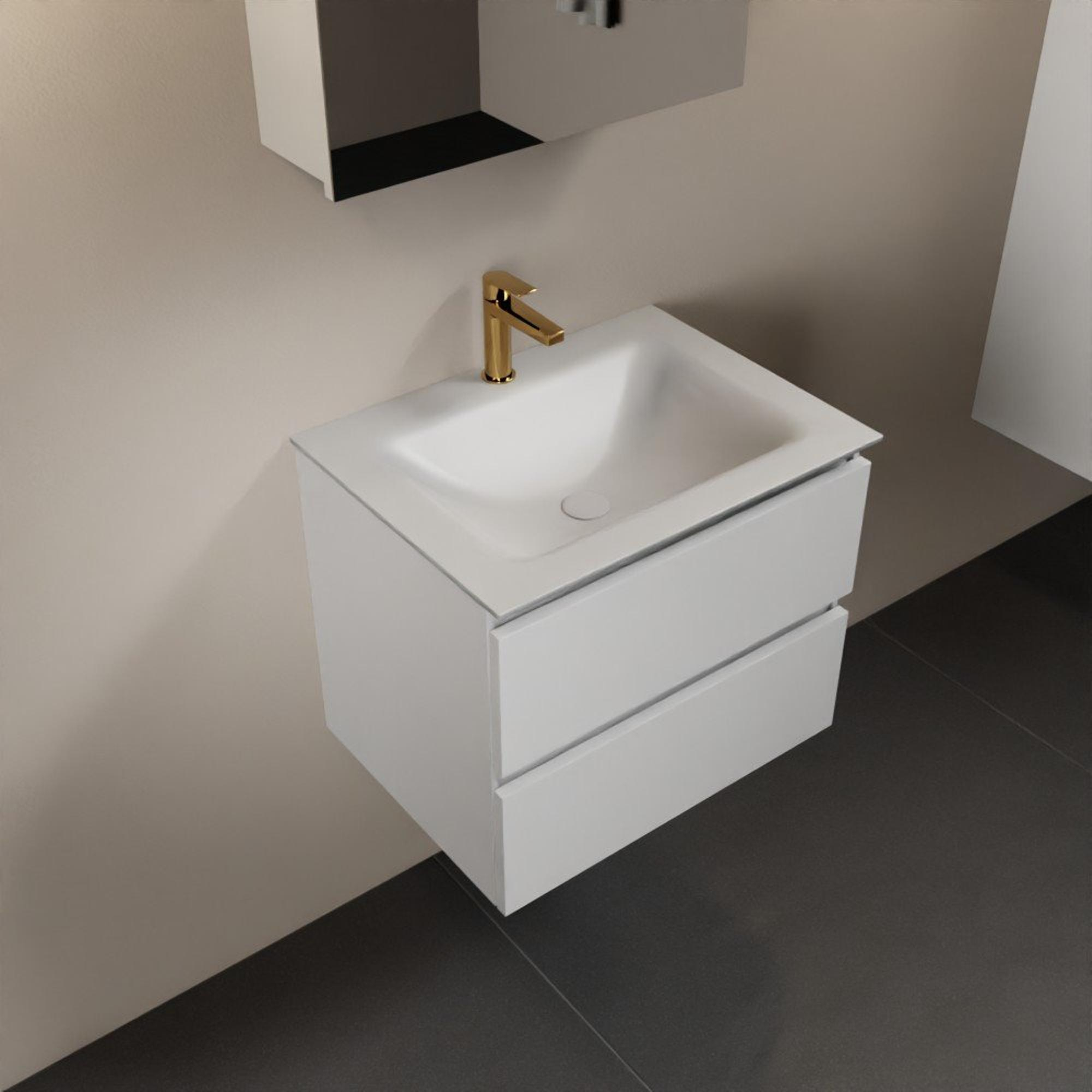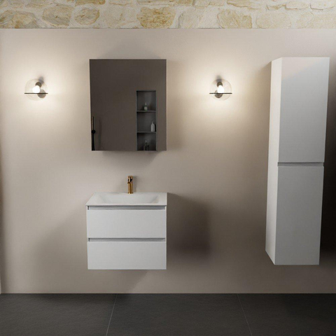 Mondiaz Aivy badmeubelset - 60x45x50cm - 1 kraangat - 1 wasbak talc Solid surface - Midden - 2 lades - Met spiegelkast - MDF Talc