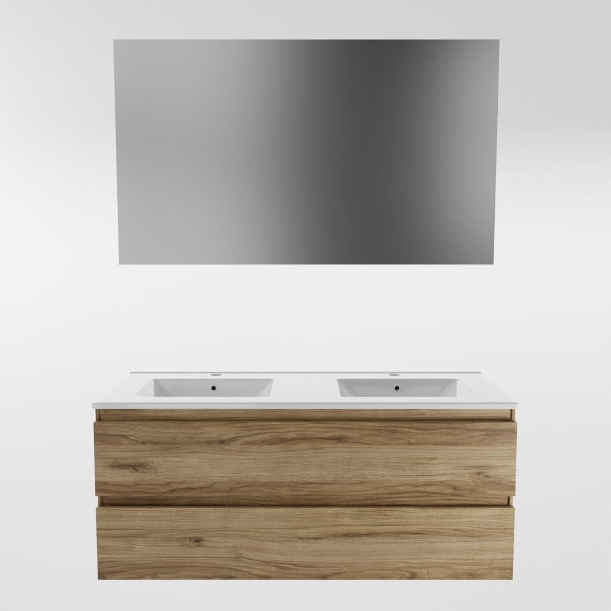 Mondiaz Aivy badmeubelset - 120x45x50cm - 2 kraangaten - 2 wasbakken talc Keramiek - Links en rechts - 2 lades - Met spiegel - Melamine Chai