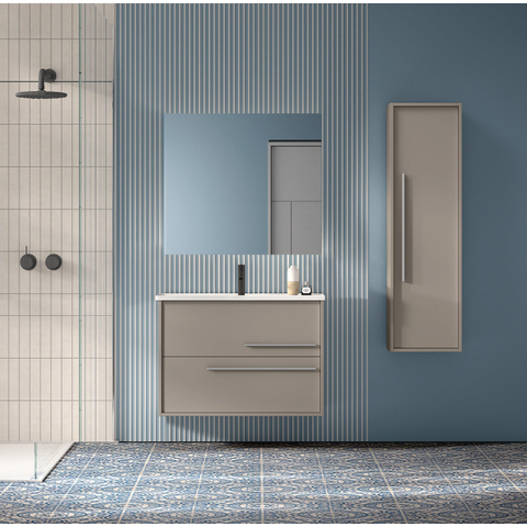 Deze wastafelonderkast straalt stijl en elegantie uit met zijn taupe kleur en strakke ontwerp. Het MDF materiaal zorgt voor duurzaamheid en een luxe uitstraling in je badkamer. De standaard greep voegt een klassiek tintje toe aan het moderne design, waardoor het perfect past bij verschillende badkamerstijlen.