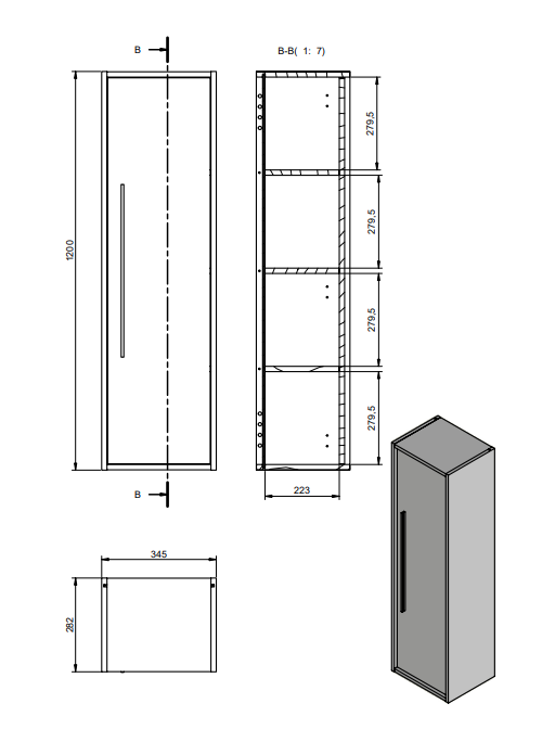 - Afmetingen: 120x34.5x28.2cm