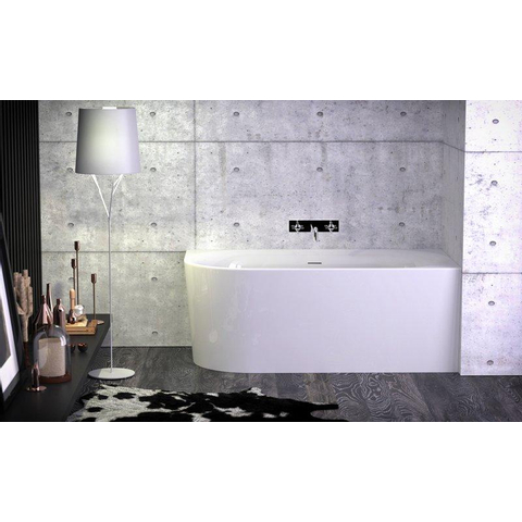 Plieger Kansas Hoekbad - 155x80x60cm - hoek rechts - met slotoverloop - met af- en overloopgarnituur - met poten - acryl - wit