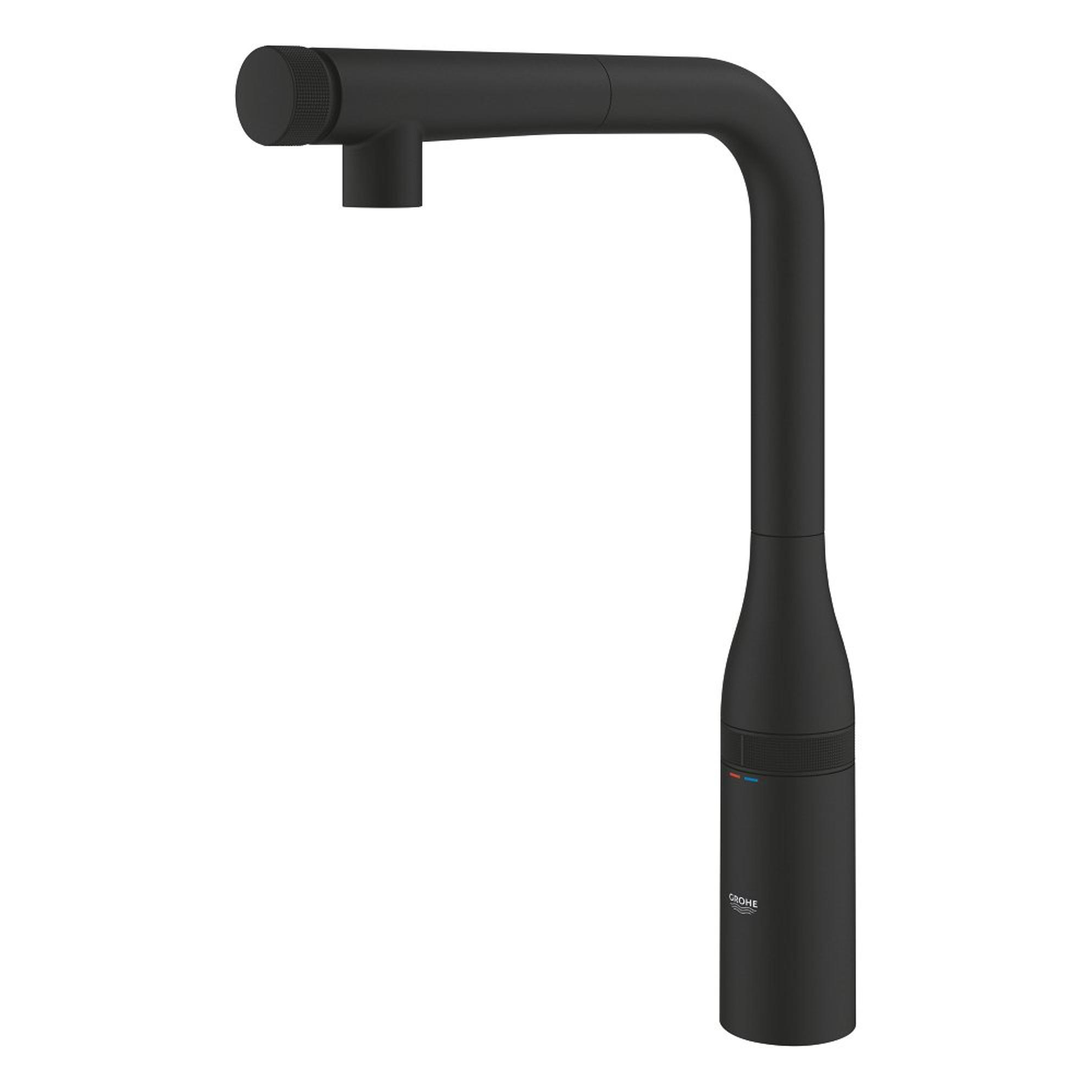 Precieze bediening binnen handbereik met deze flexibele GROHE Essence SmartControl keukenkraan met uittrekbare sproeikop in elegant Phantom Black