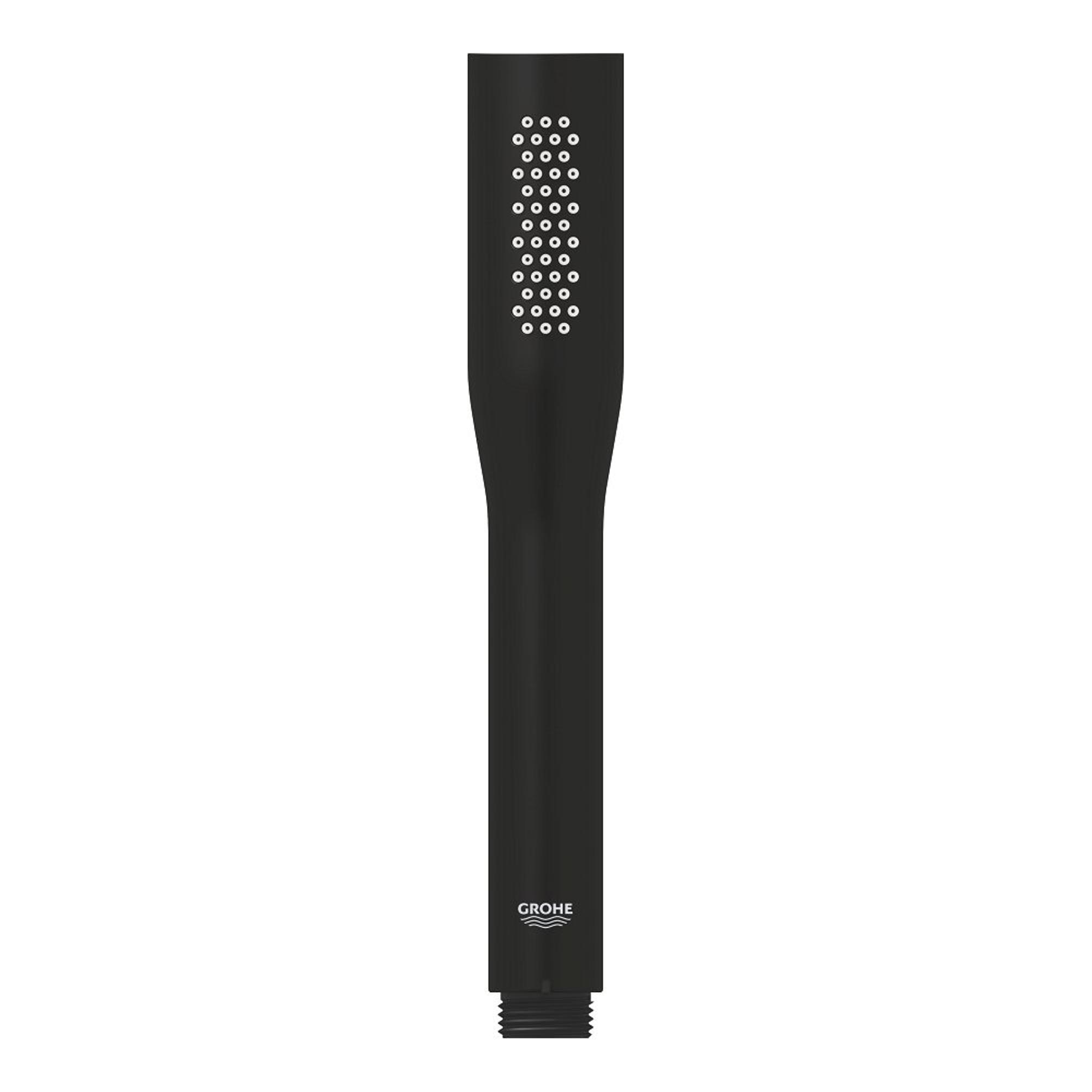 De GROHE Euphoria Cosmopolitan Stick in Phantom Black – een waterbesparende handdouche met stoere kleur en contouren De Euphoria Stick Cosmopolitan is maar 215 mm lang en is voorzien van GROHE DreamSpray® technologie, voor een efficiënte verdeling van het water over de 45 sproeigaatjes, en GROHE CoolTouch® technologie, waardoor de greep nooit te heet wordt. GROHE StarLight® chroom en de SpeedClean sproeigaatjes zorgen voor een douche die er perfect uitziet. De Euphoria Stick Cosmopolitan is ook opgenomen in de GROHE EcoJoy® reeks, waardoor je moeiteloos water kunt besparen door het waterverbruik te beperken tot 9,4 liter per minuut.