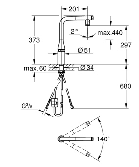 GroheEssence SmartControl1-gats keukenkraan m. uittrekbare uitloop m. 2 straalsoortenvoorsprong 20.1cmphantom black