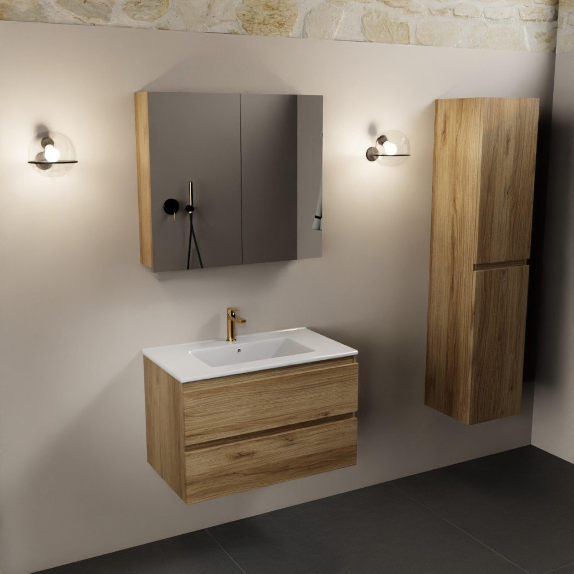De Mondiaz Aivy badmeubelset is een prachtige toevoeging aan elke badkamer. Met zijn elegante ontwerp en hoogwaardige materialen straalt dit badmeubelset klasse en stijl uit. Het biedt niet alleen functionaliteit, maar ook een vleugje luxe aan de ruimte. Met een afmeting van 80x45x50cm past dit meubel perfect in zowel kleine als grote badkamers. De combinatie van een kraangat, wasbak van talc keramiek, 2 lades, en een spiegelkast maken dit set compleet en praktisch.