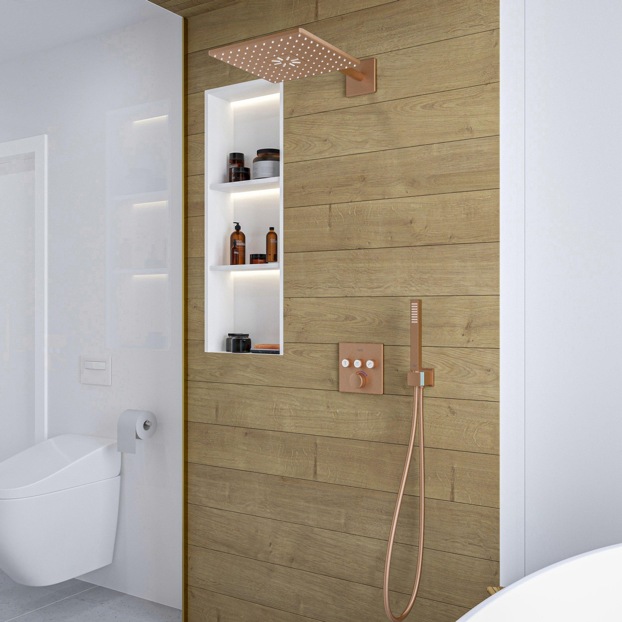 GROHE Smartcontrol Regendoucheset Inbouw - inbouwboxen - hoofddouche vierkant - staafhanddouche - brushed warm sunset