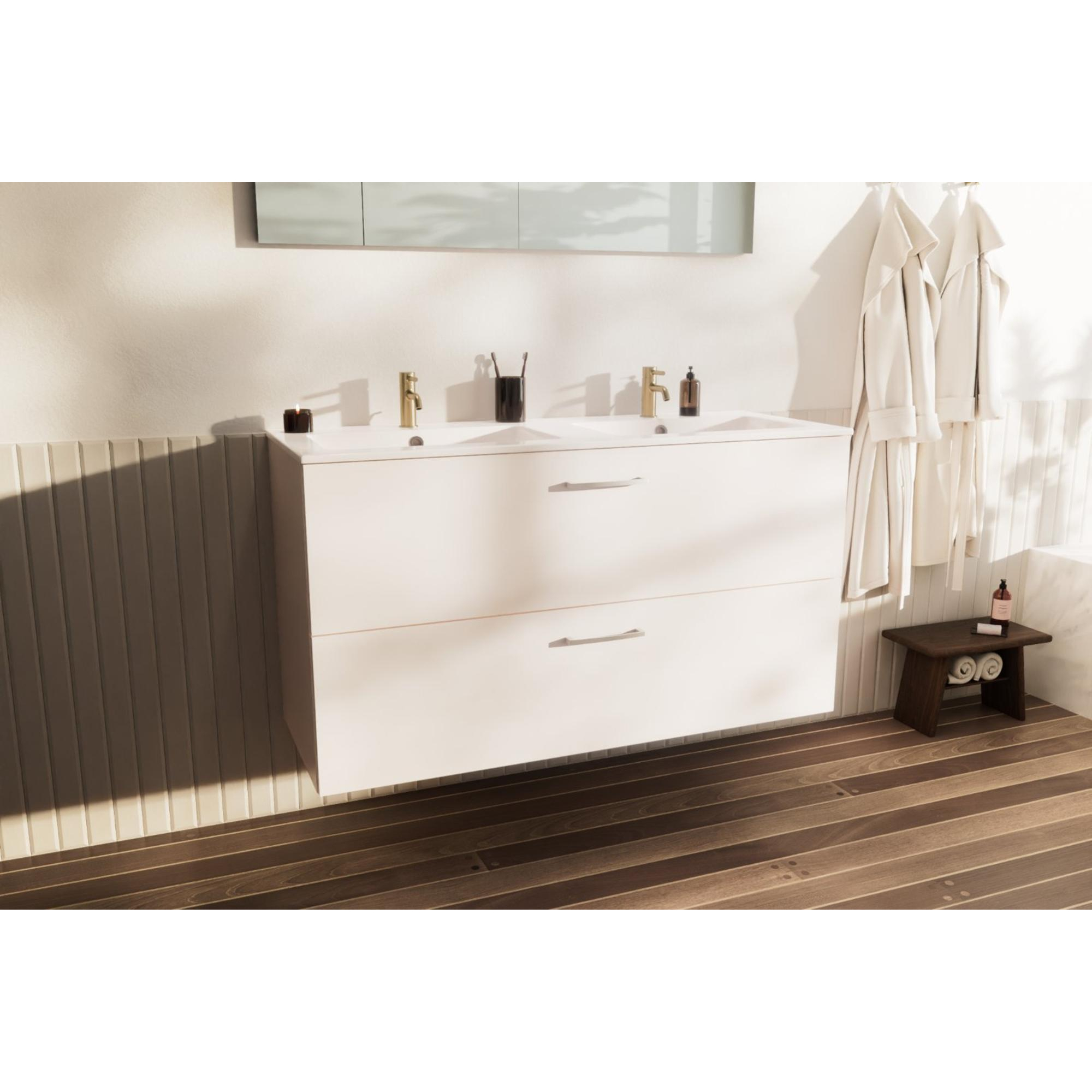 Go by Van Marcke badkamermeubelset - 120x65x45.5cm - 2 lades - met grepen - 2 wasbakken wit mat - 2 kraangaten - met spiegel - MDF standard white