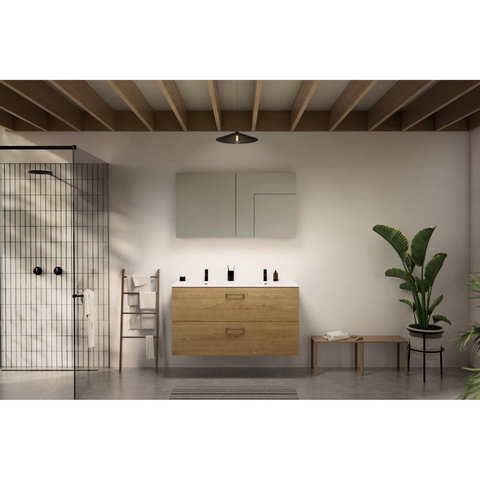 Go by Van Marcke Go badkamermeubelset - 120x65x45.5cm - 2 lades - met grepen - 2 wasbakken wit mat - 2 kraangaten - met spiegelkast - MDF Riverside Oak