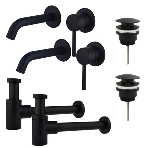Deze wastafelkraanset straalt stijl en elegantie uit dankzij het verfijnde ontwerp en de mat zwarte afwerking. Het slanke design past perfect bij een eigentijdse badkamerinrichting en voegt een vleugje luxe toe aan de ruimte. De inbouw wastafelkraan en verlaagde design sifon zorgen voor een naadloze en minimalistische uitstraling.