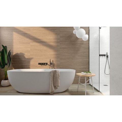 Deze populaire houtlook tegel van Colorker heeft een prachtig lineair patroon. De tegel zal een fijne warme natuurlijke sfeer geven aan jouw toilet of badkamer. Terwijl de rechte lijnen ook zorgen voor een strak uiterlijk. Ideaal voor bijvoorbeeld de badkamer in Japandi-stijl.