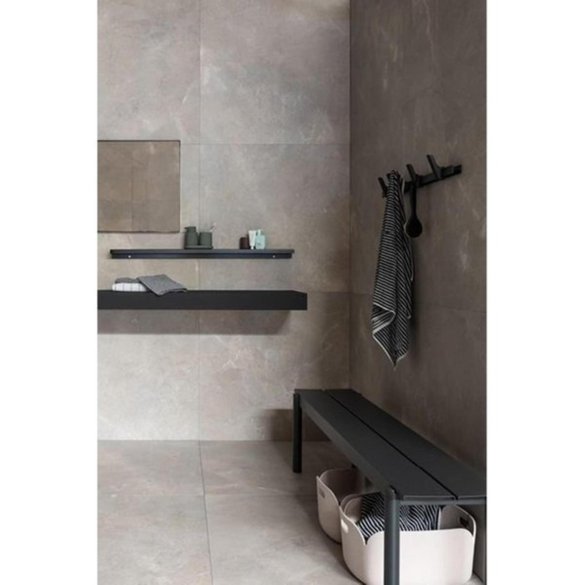 De veelzijdigheid van deze tegel maakt hem ideaal voor zowel vloer- als wandtoepassingen. Of het nu in de badkamer, keuken, hal of zelfs buiten is, deze tegel voegt een vleugje klasse toe aan elke ruimte. De neutrale grijze kleur maakt hem gemakkelijk te combineren met verschillende interieurstijlen en kleurenpaletten, waardoor hij een tijdloze keuze is voor elk project.