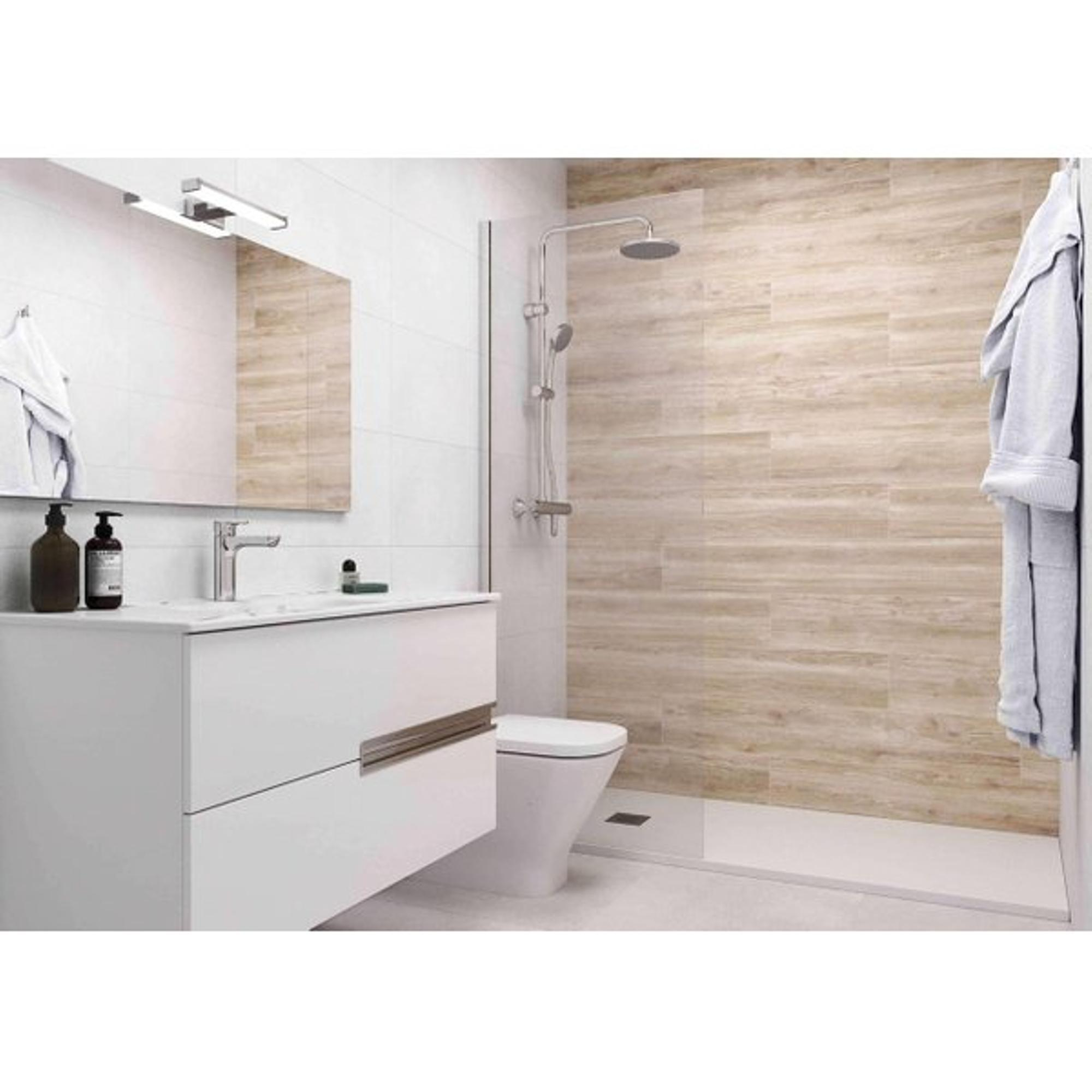 Deze Roca Abbey tegel straalt een moderne uitstraling uit met zijn strakke lijnen en eigentijdse ontwerp. De combinatie van de rechthoekige vorm en de gerectificeerde afwerking zorgt voor een naadloze look die perfect past bij een eigentijdse badkamerstijl. De Roble kleur voegt warmte toe aan de ruimte en creëert een uitnodigende sfeer die elke dag een luxe spa-ervaring biedt.