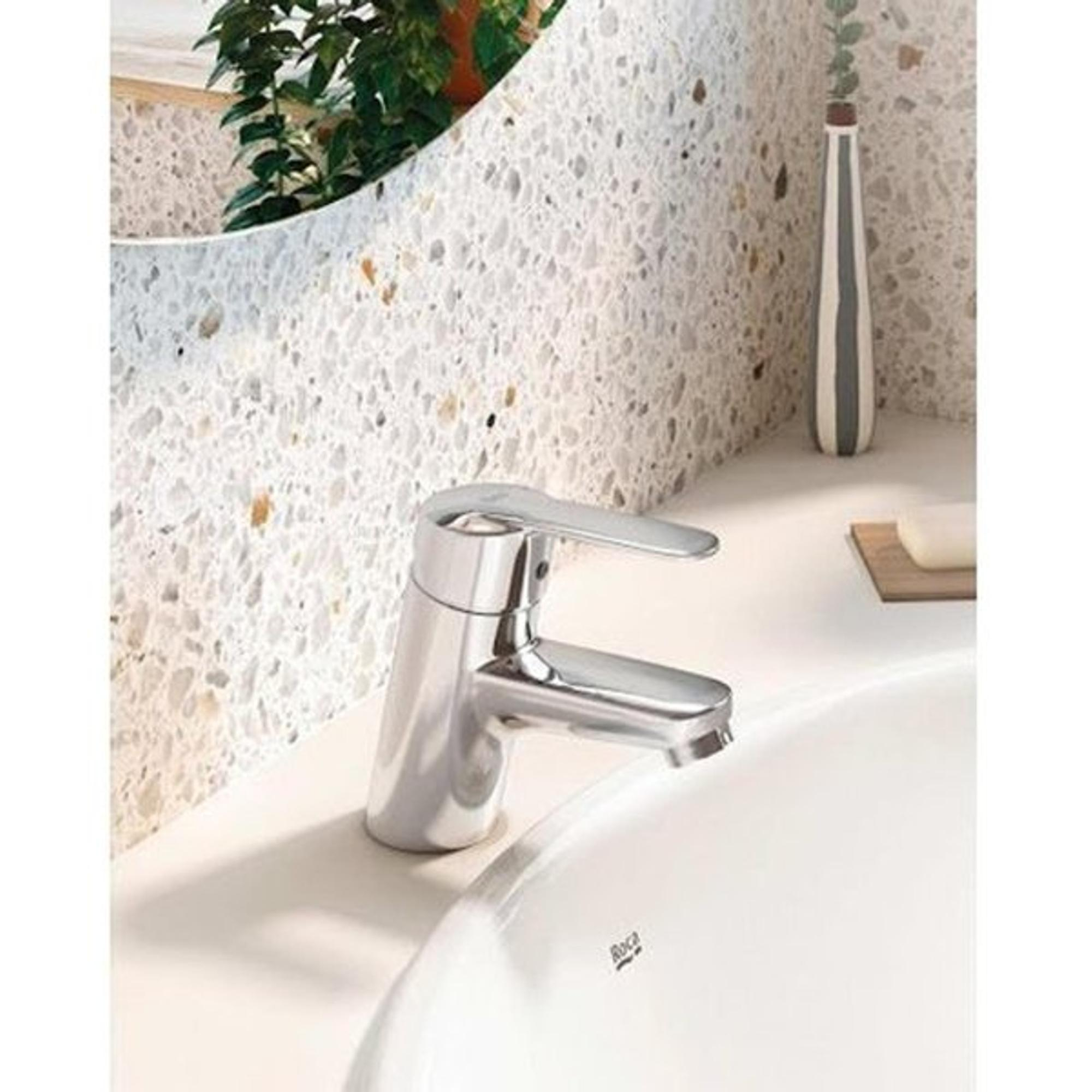 Het terrazzo ontwerp van de Roca Pigment tegels zorgt ervoor dat je een unieke stijl kunt creëren en dat je jouw badkamer kunt onderscheiden van andere badkamers.