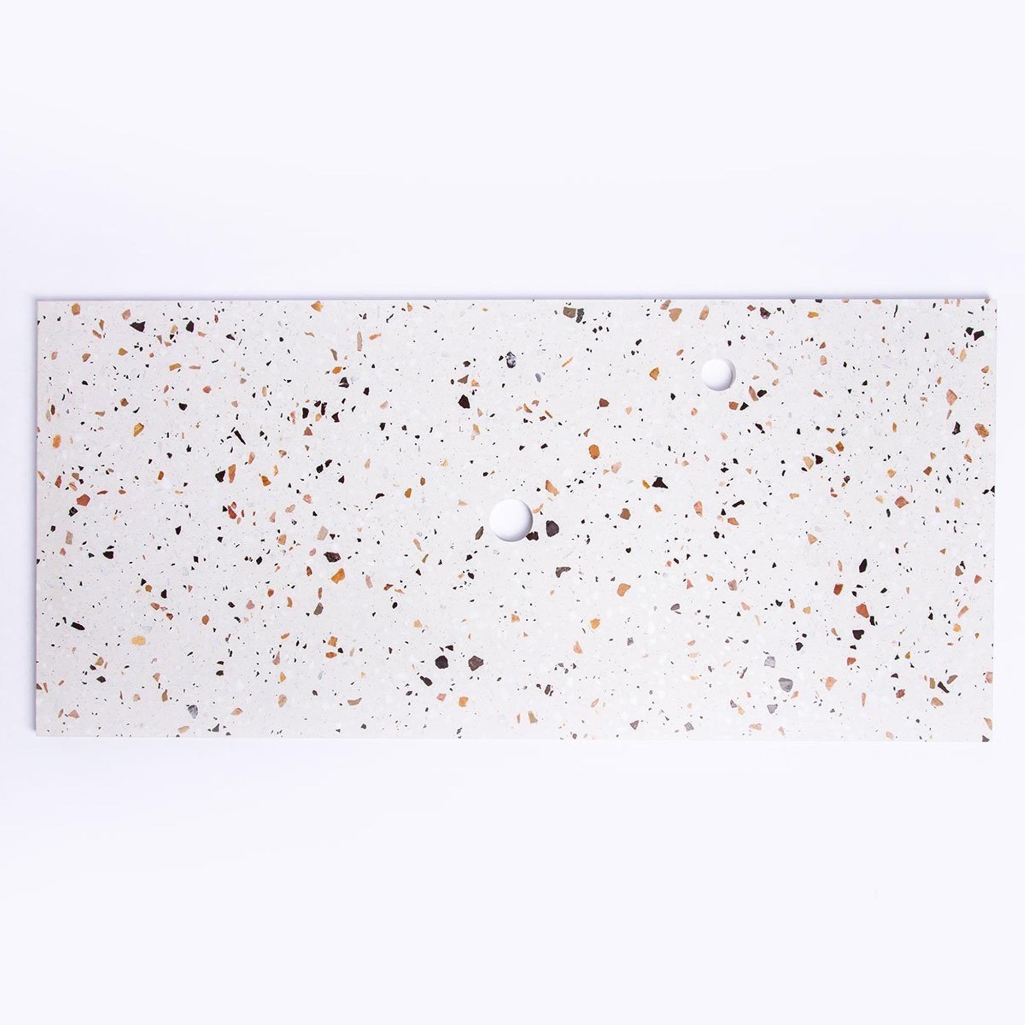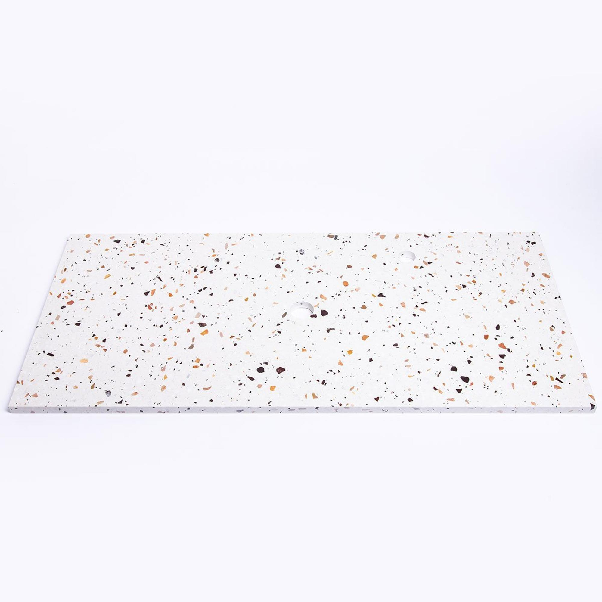 Dit topblad is niet alleen mooi, maar ook duurzaam en robuust. Het Terrazzo materiaal is slijtvast en bestand tegen vocht, waardoor het perfect is voor de badkameromgeving. De kwaliteit en stevigheid van dit topblad zorgen ervoor dat het lang meegaat en zijn elegantie behoudt.