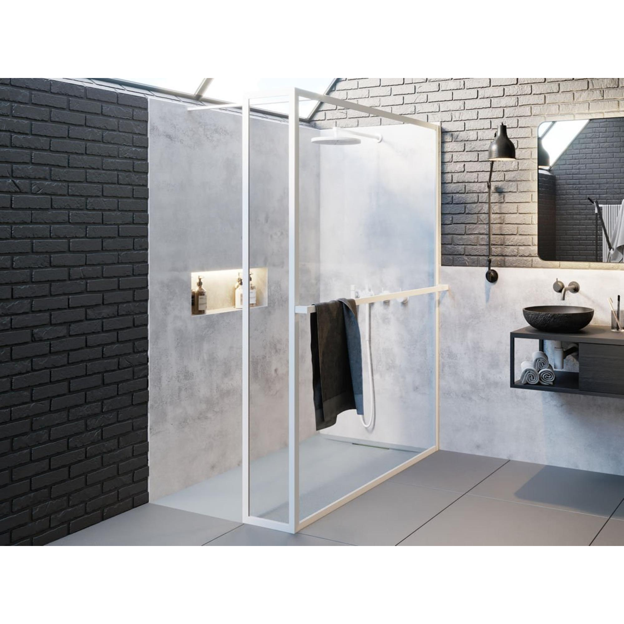Riho Lucid GD402 inloopdouche 90x200cm met 30cm zijwand met handdoekrek kader mat wit SHOWROOMMODEL