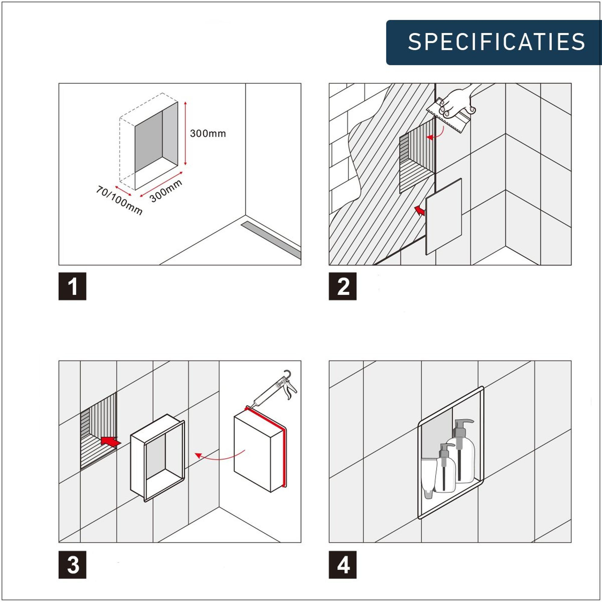 Niet alleen is de FugaFlow Arcas Inbouwnis een lust voor het oog, maar hij is ook uiterst functioneel. Met zijn ruime afmetingen van 30x30x10cm biedt deze inbouwnis voldoende opbergruimte voor al je badkamerbenodigdheden. Of het nu gaat om shampooflessen, zeep of andere toiletartikelen, deze inbouwnis houdt je badkamer georganiseerd en opgeruimd.