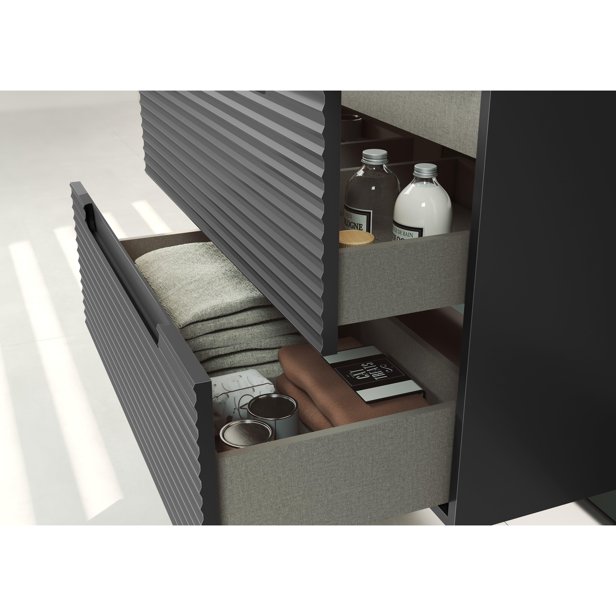 Naast zijn esthetische waarde is de Adema Prime Balance Badkamermeubelset ook zeer praktisch in gebruik. Met twee ruime lades biedt het voldoende opbergruimte voor al jouw badkamerbenodigdheden, van handdoeken tot toiletartikelen. Het kraangat is handig ontworpen voor eenvoudige installatie van een kraan naar keuze, terwijl de ovale keramische wasbak gemakkelijk schoon te maken is en bestand is tegen dagelijks gebruik.