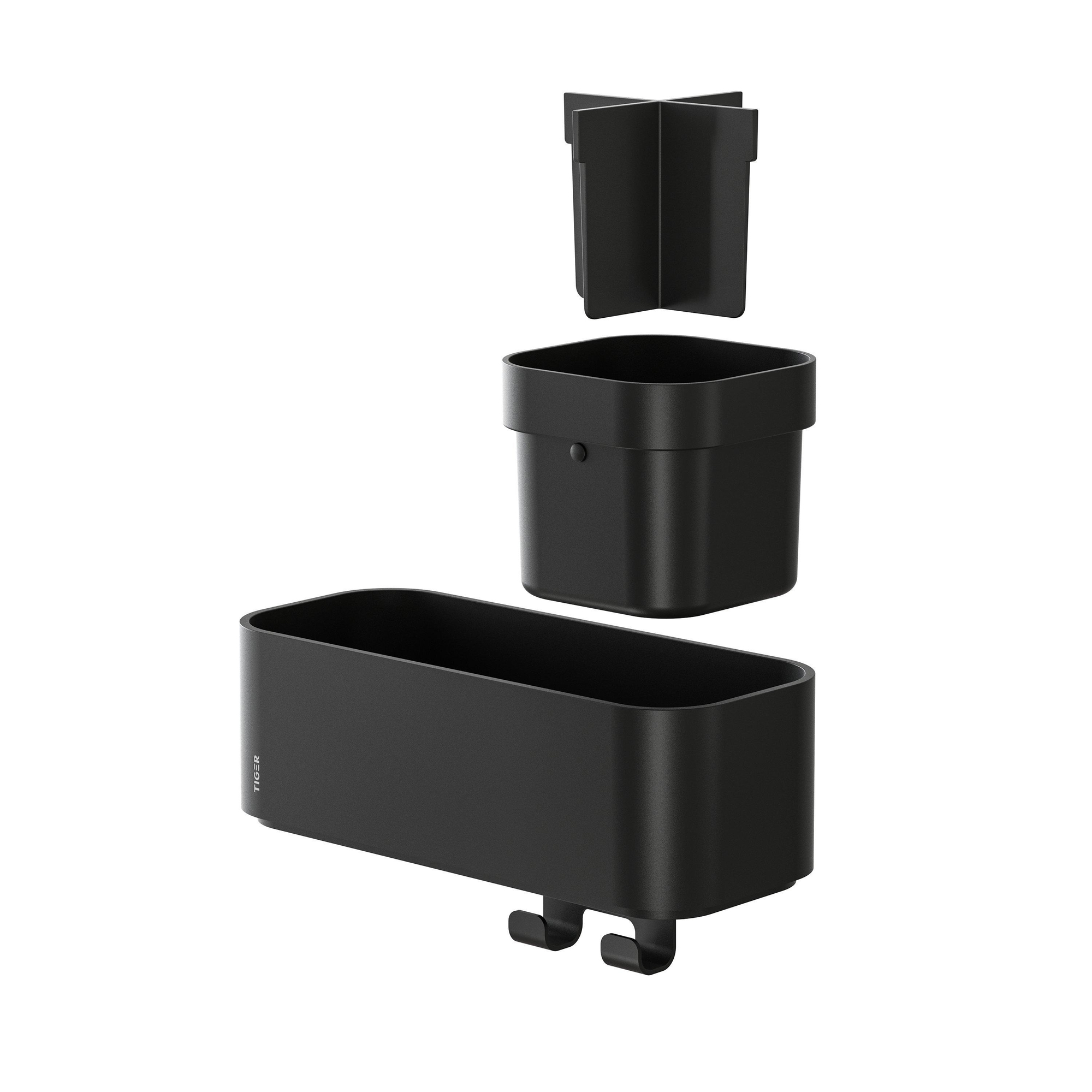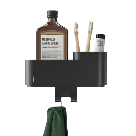 Tiger 2-Store Opbergbakje met handdoekhaak en tandenborstelhouder 25 cm Zwart