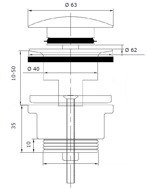 Je hebt geen kraan met waste nodig om deze plug te bedienen. De klikwaste is eenvoudig te bedienen door op de afvoerplug te drukken. Zo laat je water doorlopen of houd je juist water vast in jouw wasbak. De afvoerplug heeft een diameter van 6.4 cm en is geschikt voor sifons met een aansluitmaat van 1.1/4" en 5/4”.
