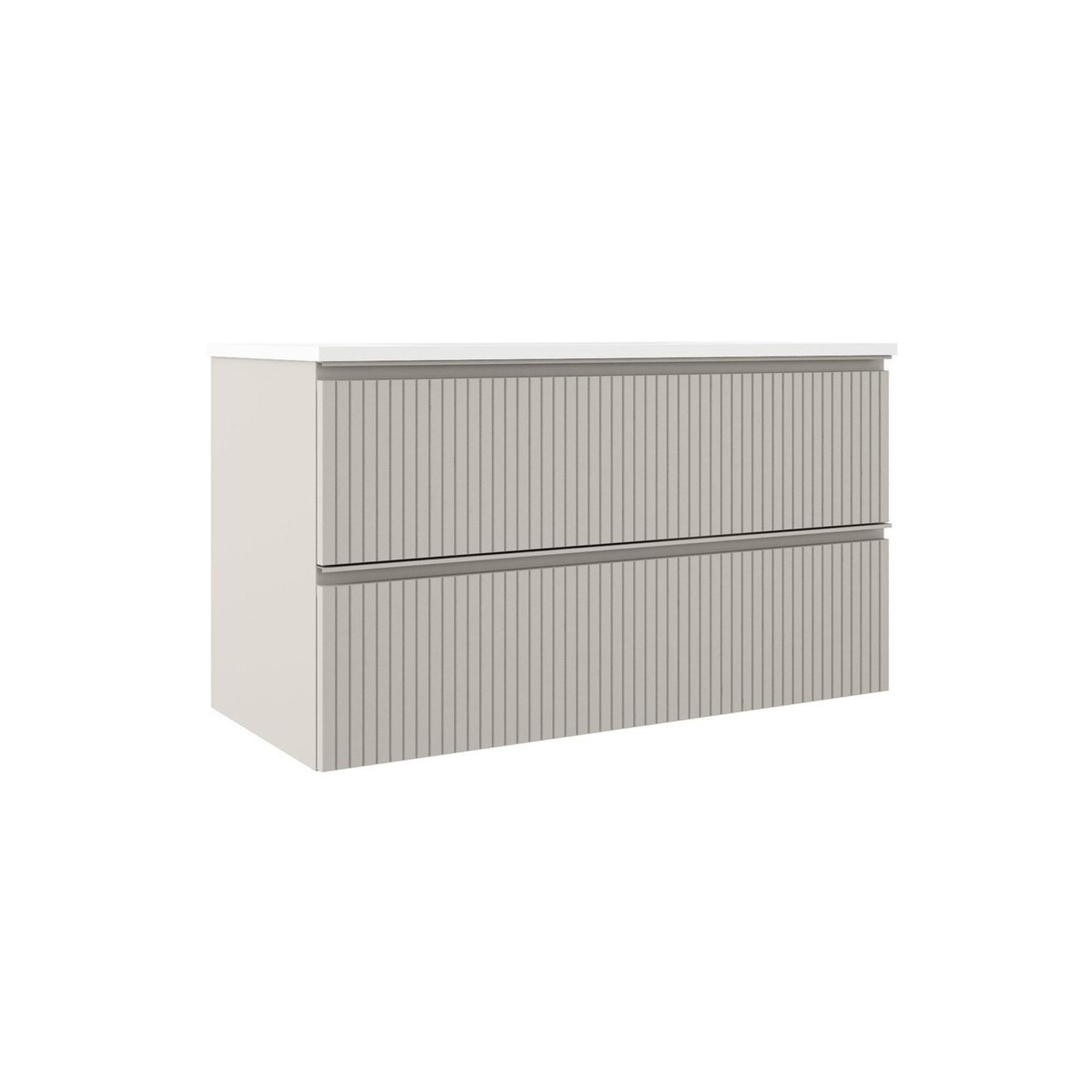 Adema Prime Blend Badkamermeubelset - 100x55x46cm - 1 rechthoekige keramische wasbak wit - 1 kraangat - 2 lades - rechthoekige spiegel - mat cotton (beige)