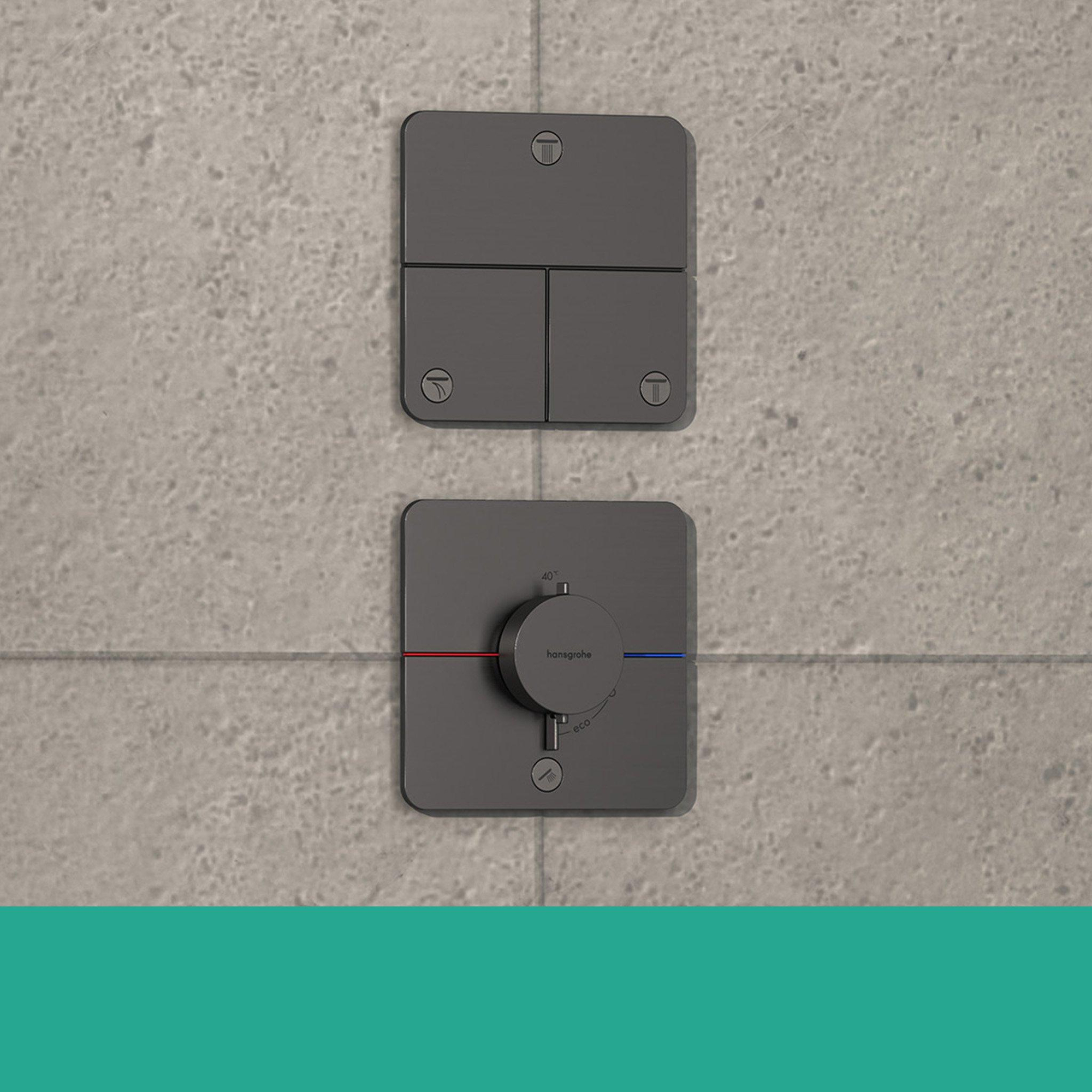 Het gebruiksgemak is net zo indrukwekkend als het design: via het onderoppervlak wordt het water met één druk op de knop in- en uitgeschakeld (Select). Via de slanke onderste greep kan de hoeveelheid water naar wens worden aangepast. De thermostaatkraan houdt de gewenste temperatuur altijd constant en past zich indien nodig automatisch aan. Door de extra uitgang kan de thermostaatkraan worden gecombineerd met een ShowerSelect kraan voor drie functies (#15587340). Vervolgens bedient hij samen met de kraan in totaal vier functies.