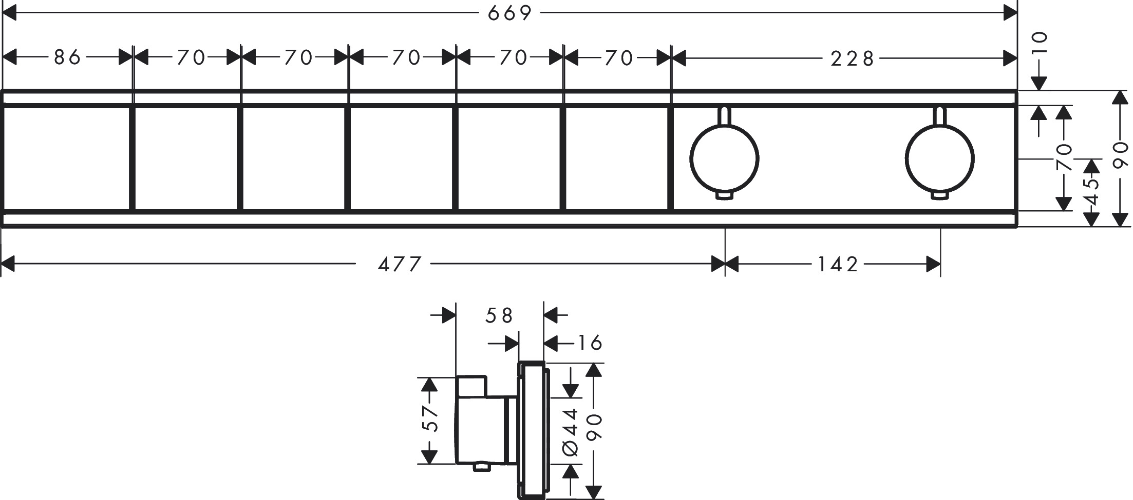 De thermostaatkraan is bijna volledig in de muur verzonken waardoor je meer ruimte hebt in de douche. Met behulp van de grote knoppen met duidelijke, slijtvaste symbolen kunnen verschillende functies, zoals verschillende straalsoorten, de hoofddouche en een hand- of schouderdouche net als een lichtschakelaar worden in- of uitgeschakeld (Select). Er kunnen meerdere douches tegelijk worden gebruikt. De watertemperatuur en het volume kunnen worden ingesteld met behulp van anti-slip bedieningsknoppen. De douchethermostaat beschermt ook tegen te heet water: hij reageert bliksemsnel op drukveranderingen en past de temperatuur automatisch aan. Een veiligheidsblokkering biedt bij 40°C extra bescherming tegen te heet water om de heerlijkste momenten in het water te garanderen.