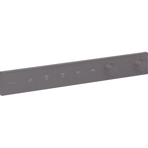De RainSelect-douchethermostaat voor vijf functies (inbouwsysteem) maakt indruk met zijn finish in Brushed Black Chrome en talrijke comfortfuncties. De expressieve tint komt precies overeen met de identieke FinishPlus-finish van andere producten van hansgrohe. Samen met de bijpassende badkamerkranen, accessoires of douches, met name die uit de Rainfinity-serie, wordt je droombadkamer werkelijkheid.